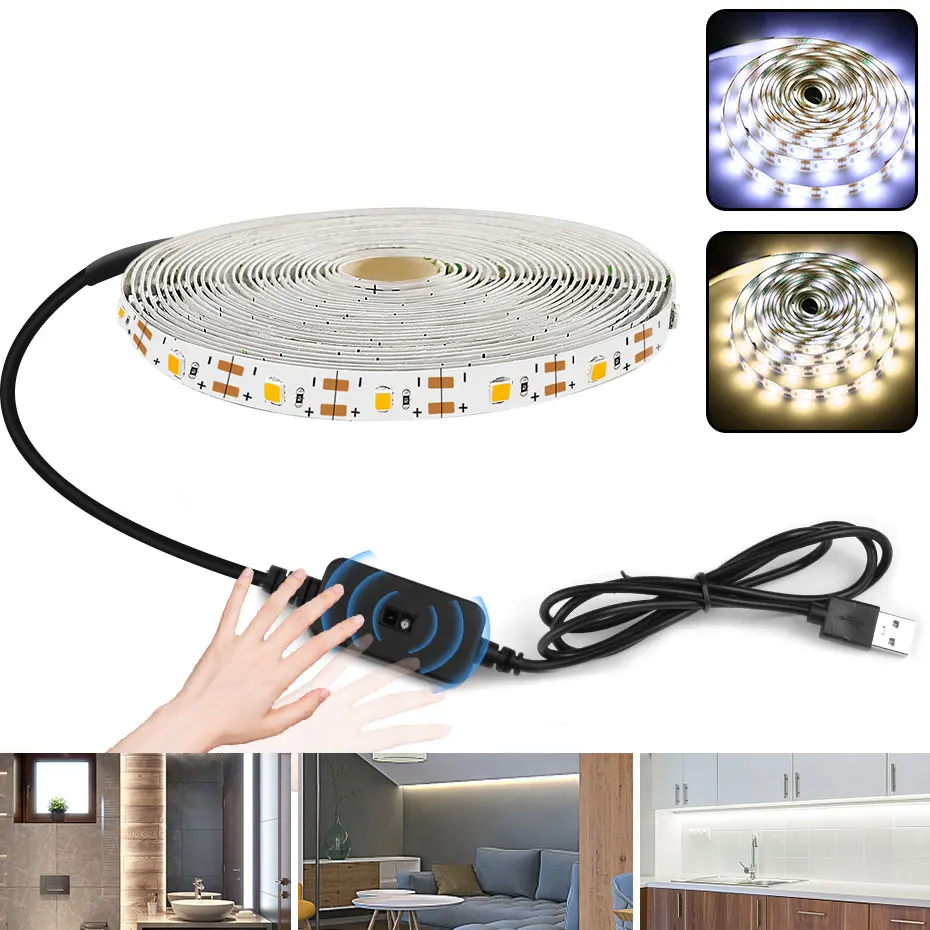 Светодиодная лента с датчиком ручного подметания, 5 в постоянного тока, USB, гибкая Водонепроницаемая лента, 1- 5 м, освещение для комнаты, кухни, шкафа, спальни, телевизора, tira