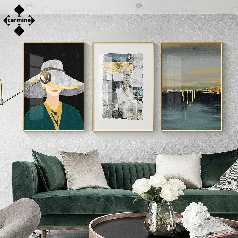 Современная Картина на холсте для леди, темно-зеленый плакат и печать, абстрактная картина на стену, модные настенные картины для украшения дома