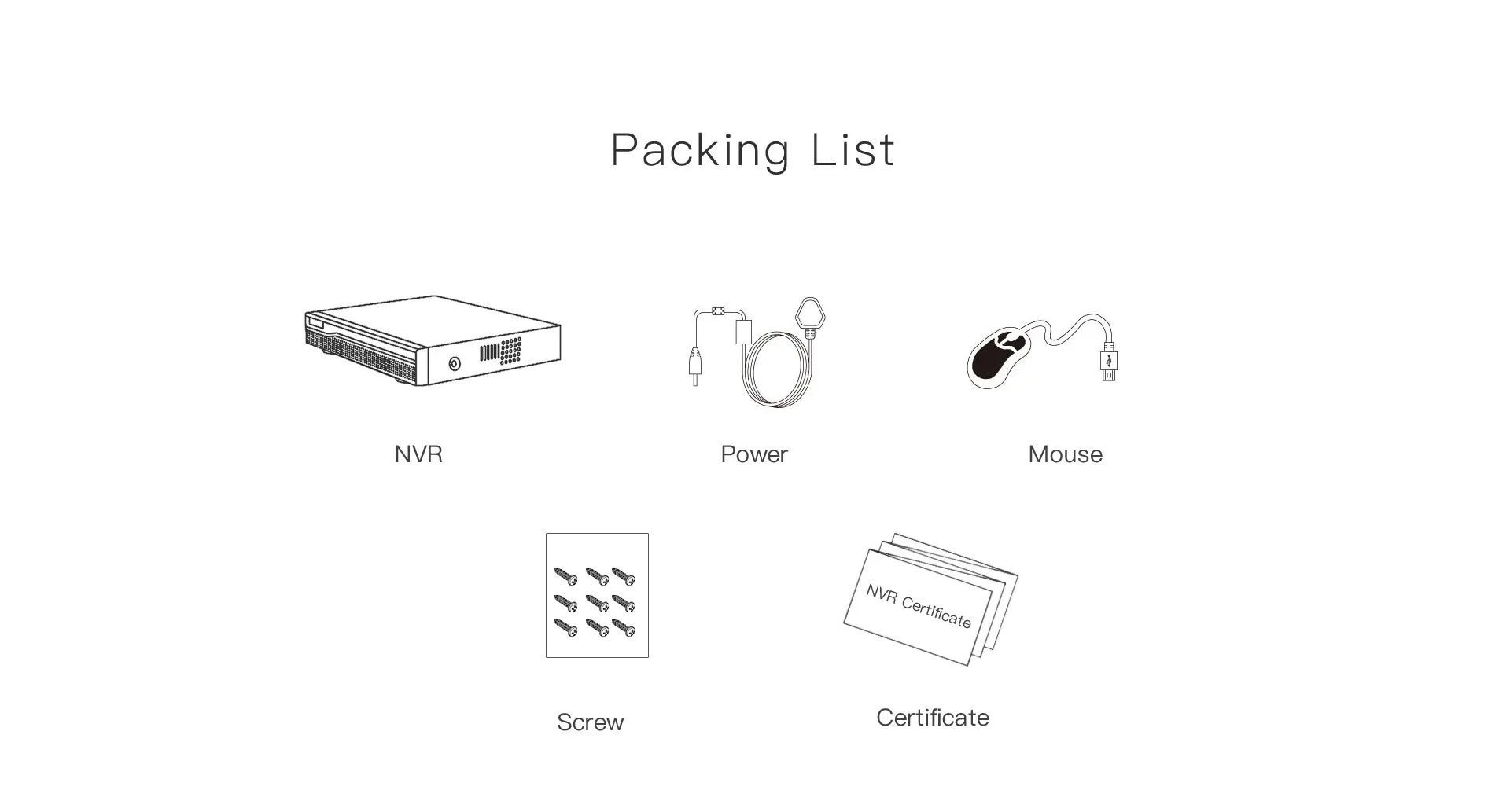 1x8 каналов NVR 1x адаптер (NVR не имеет адаптера AU, там будет переходник) 1x Руководство пользователя 1x мышь