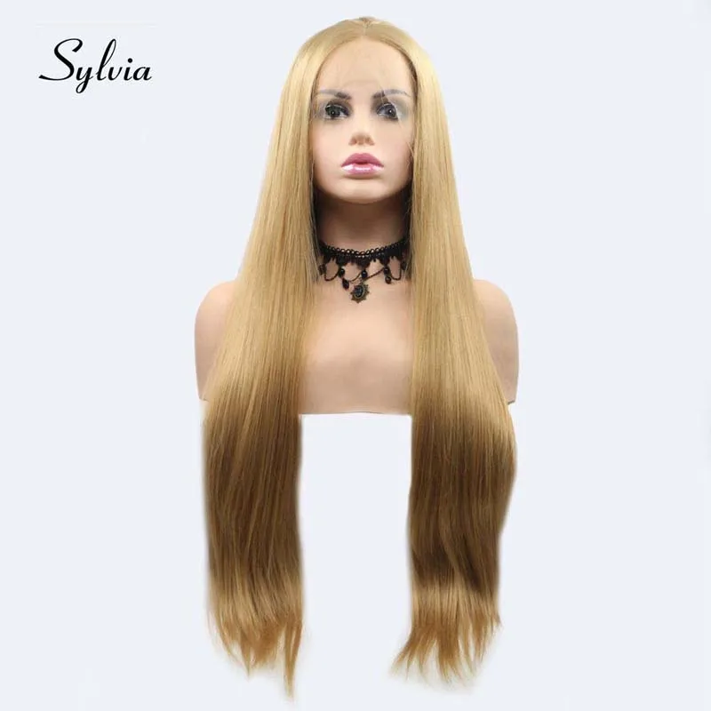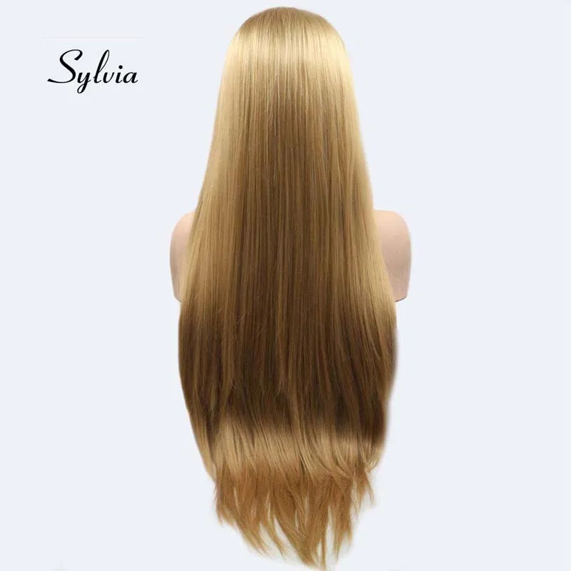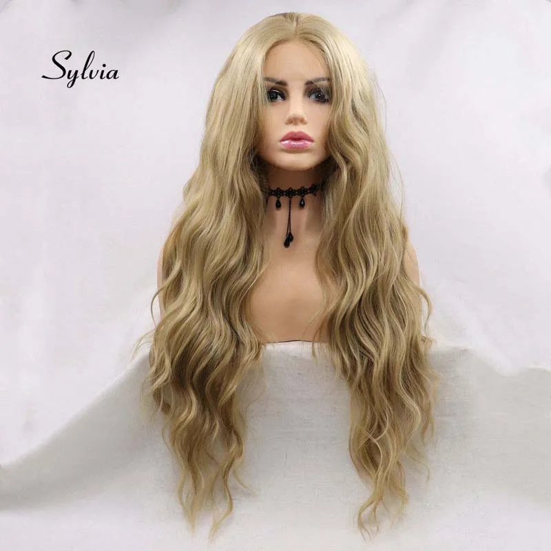 Sylvia 24 # Длинные свободные волнистые синтетические кружевные передние парики для женщин, кружевные волосы, Термостойкое волокно, желтый парик