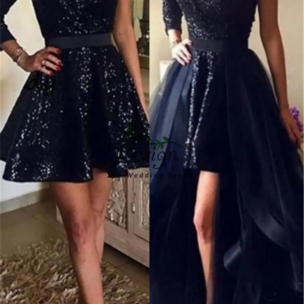 Пикантные босоножки на высоком каблуке Blingbling ткани с блестками черного цвета на одно плечо съемная юбка до колена, шитье, выполненный на заказ, женские платья Сакура вечерние платья