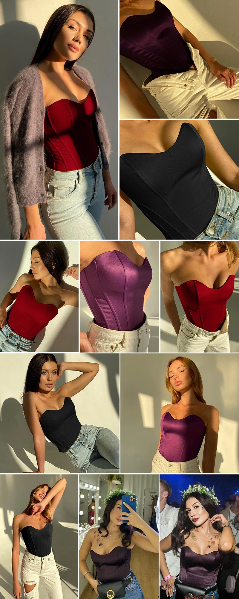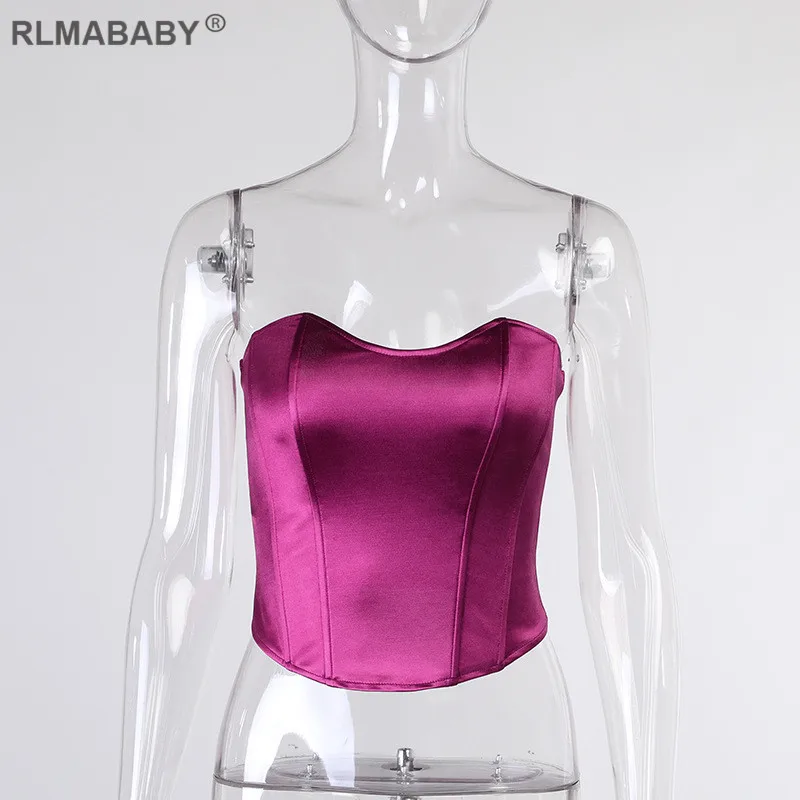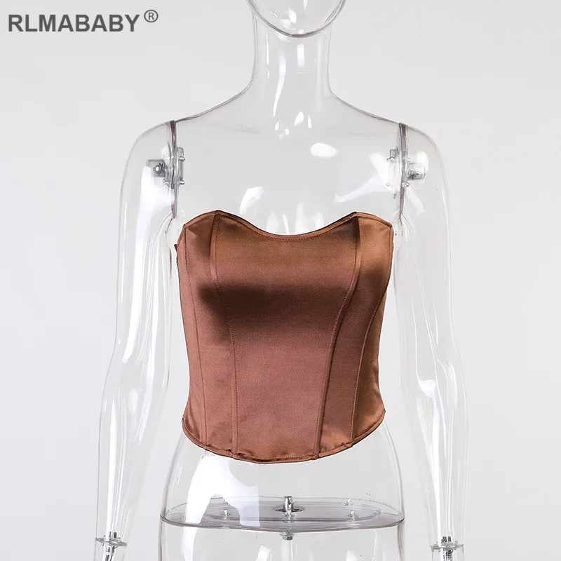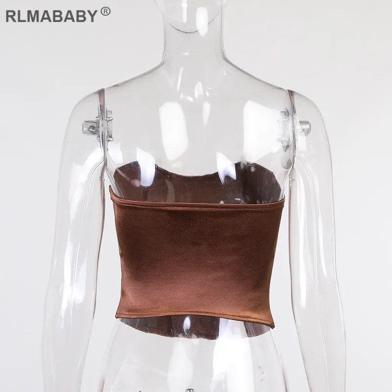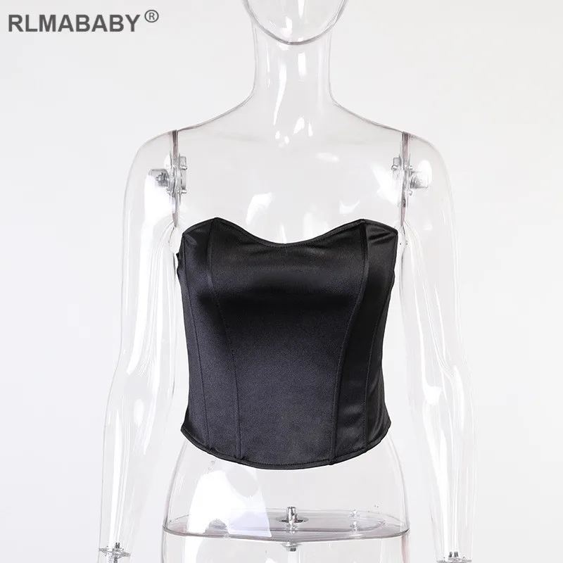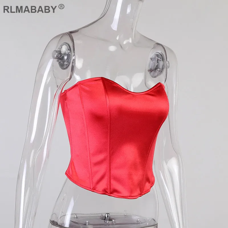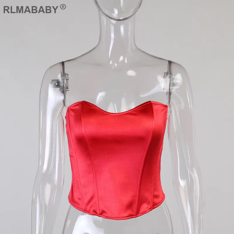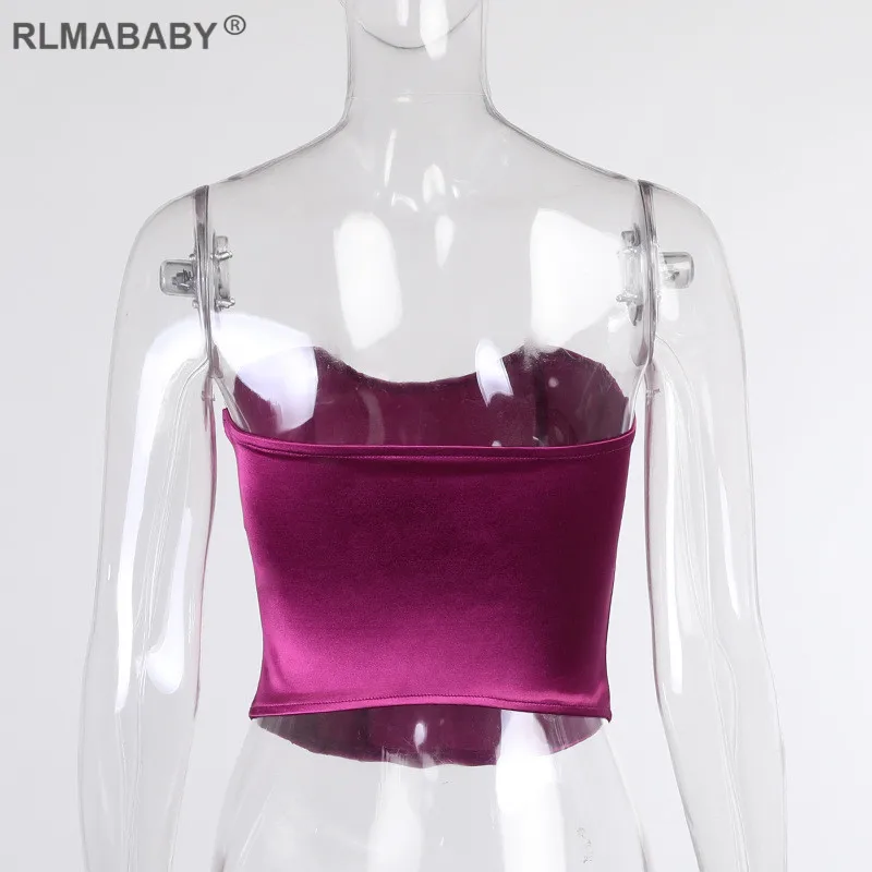 Сезон: весна-лето без бретелек с v-образным вырезом укороченная атласная ночная сорочка повседневное уличная Женская тонкая майка Топ Элегантные женские вечерние пикантные топ на бретелях