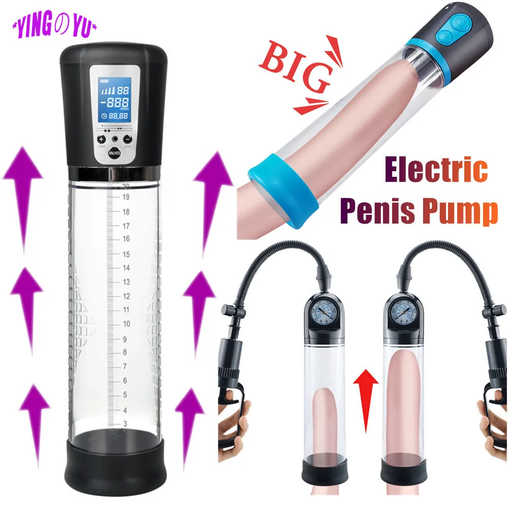Электрический насос для пениса с ЖК-дисплеем, вакуумный насос, секс-игрушки для взрослых мужчин, увеличитель пениса 18 +, мужской удлинитель пениса для эрекции, тренировочный удлинитель