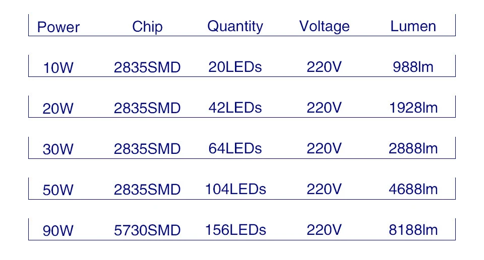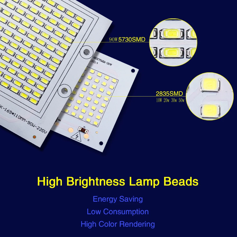 Особенности:1. 220 В Высокое напряжение, удобное использование. Не Нужен драйвер2,10 Вт 20 Вт 30 Вт 50 Вт 90 Вт, низкое потребление,3. Высокое качество 2835/5730 smd светодиодный чип, высокая яркость.4. Энергосбережение и экологичность, способствует переработке.5. Низкий нагрев, не УФ или ИК-светильник.6. Сейсмический, ударопрочный, нетепловое излучение, безопасный и стабильный, надежный7. Мини размер подходит для дома, офиса и выставки освещения и сада и sqaure8. Нормальный срок службы> 10000 часов, без опасных материалов.9. Мгновенный запуск, без мигания. Прочный, ударопрочный.10. Экономит мощность больше, чем галогенная лампа Спецификация:1. Тип основания: N L2. Напряжение: 200 В-240 В переменного тока3. Мощность: 10 Вт 20 Вт 30 Вт 50 Вт 90 Вт4. Диммер: нет5. Допуск мощности: 20%6. Чип: 2835SMD, 90 Вт имеет чип 2835SMD и 5730SMD, случайный корабль7. Количество SMD: 20 42 64 104 156 светодиодов8. Светильник: теплый белый/белый9. LIfespan: >10000 часов10. Цветовая температура: 6000-6500K (белый); 2800-3200K (теплый белый)