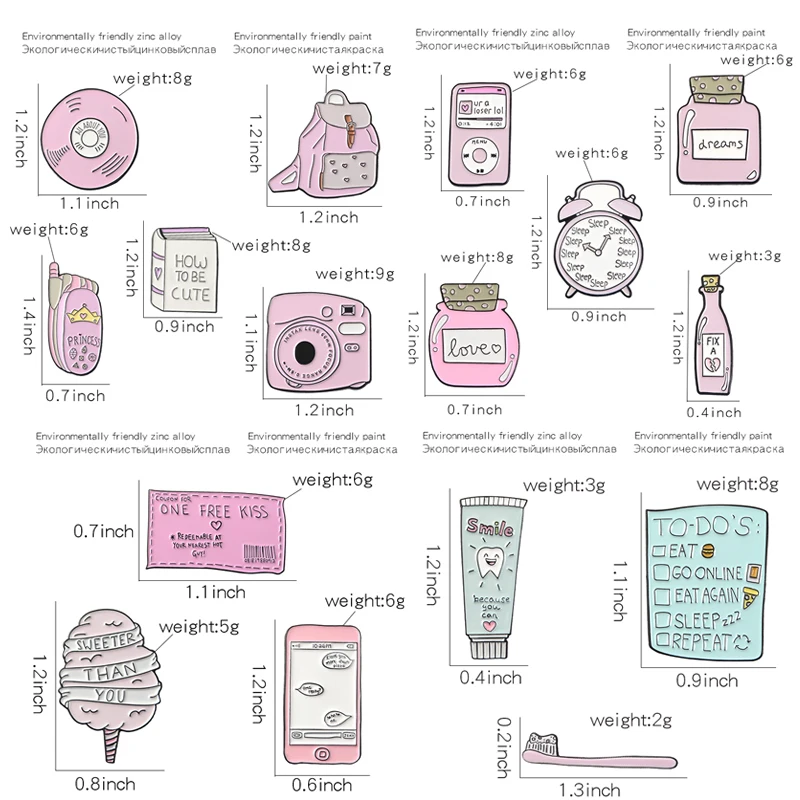 Эмалированные булавки-булавки для ранней школы с будильником, булавки для книг, розовые милые броши для зубной щетки, булавки, рюкзак, подарки для путешествий для студентов