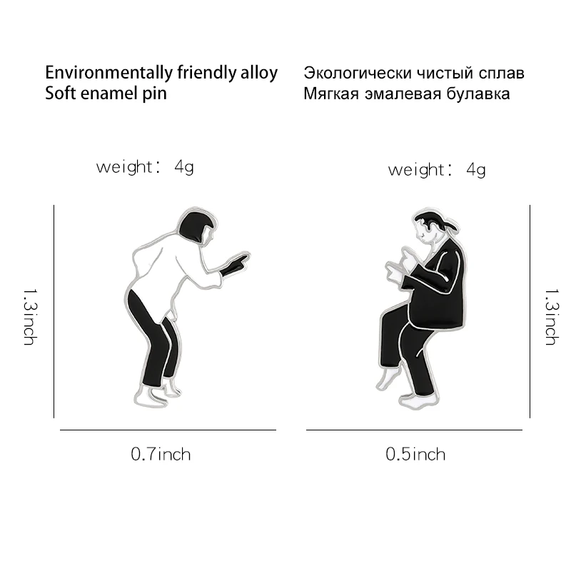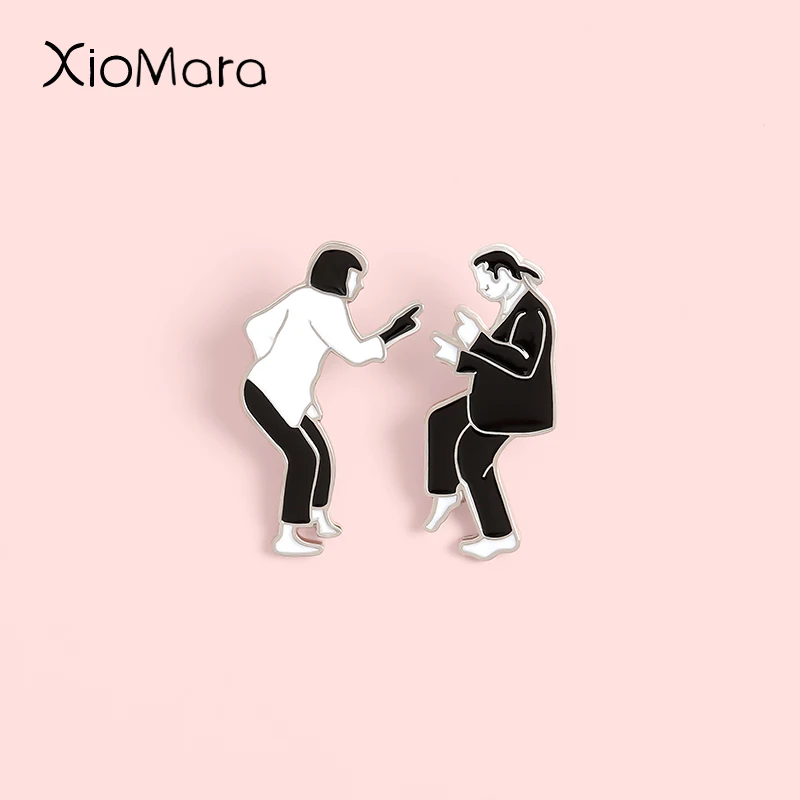Классическая черно-белая эмалевая булавка в виде персонажа фильма Duo броши для танцев, значки на лацкан, оптовая продажа, забавная булавка, ювелирное украшение, подарок для друга