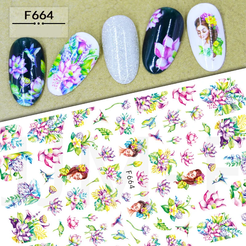 1 лист стикер для дизайна ногтей 3D Цветы лист красная роза синяя желтая Цветная Бабочка слайдер наклейка полная обертка Декор F664-681Размеры: 12x7.5cm