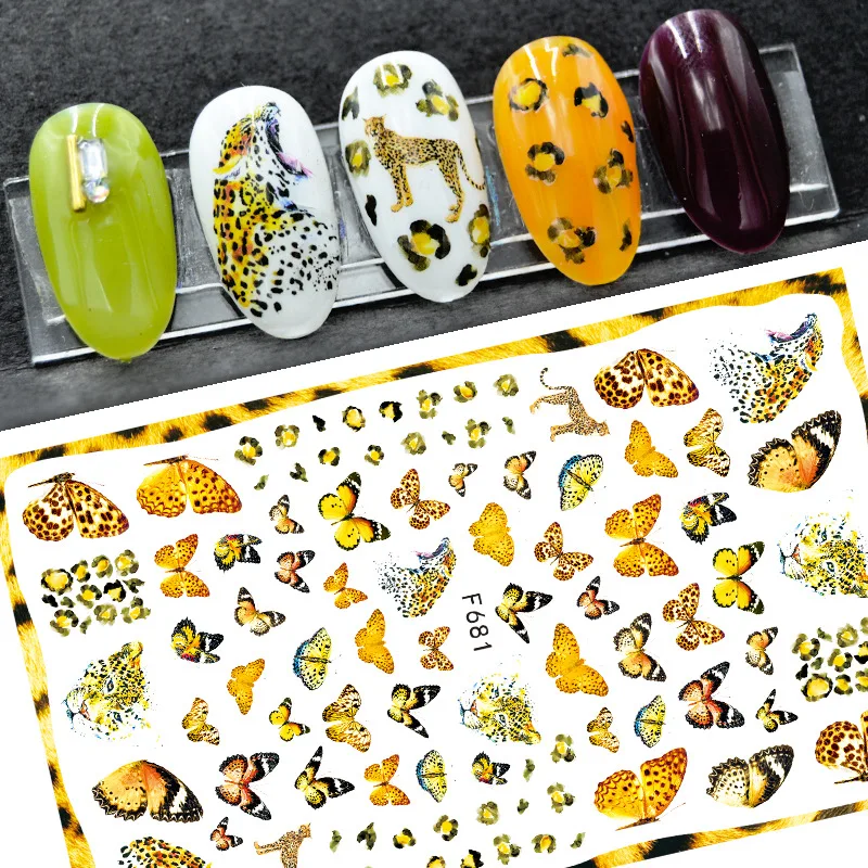 Наклейка для ногтей с изображением леопарда, бабочки, черного и бел...