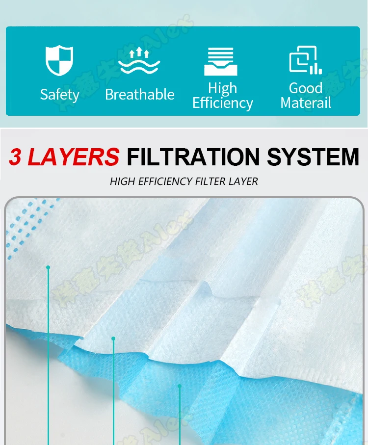 2000 шт., Одноразовые Дышащие нетканые маски для лица с 3-слойным фильтром
