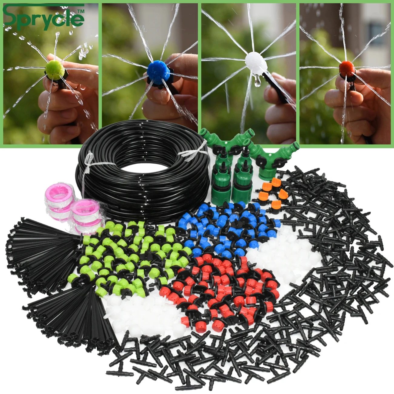 SPRYCLE 5-60 м автоматический 1/4 ''садовые цветы растения капельный полив ирригационная система 4/7 мм соединители для шлангов с регулируемыми капельницами