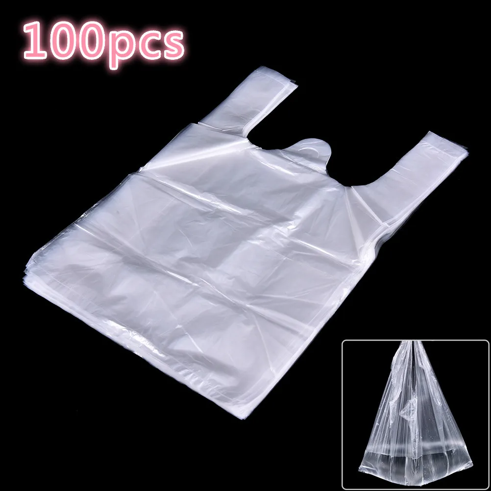 Прозрачные пакеты для покупок 20 х30 см, 100 шт., пластиковые пакеты для супермаркета с ручкой, инструменты для упаковки продуктов