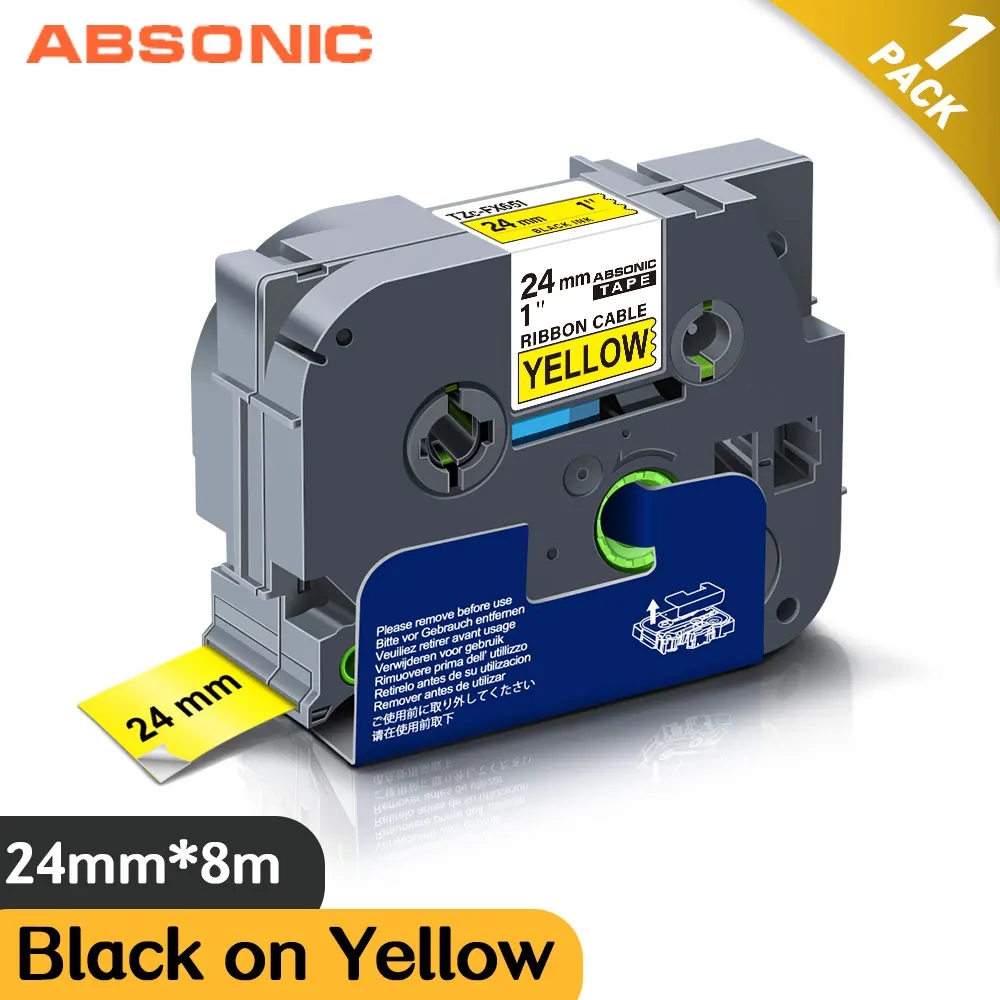 Гибкая кабельная этикетка Absonic 24 мм FX651, черная и желтая лента для этикеток Brother, кассета Caryridge, совместимая с Brother Maker