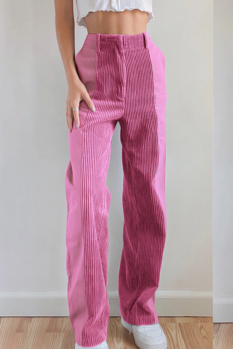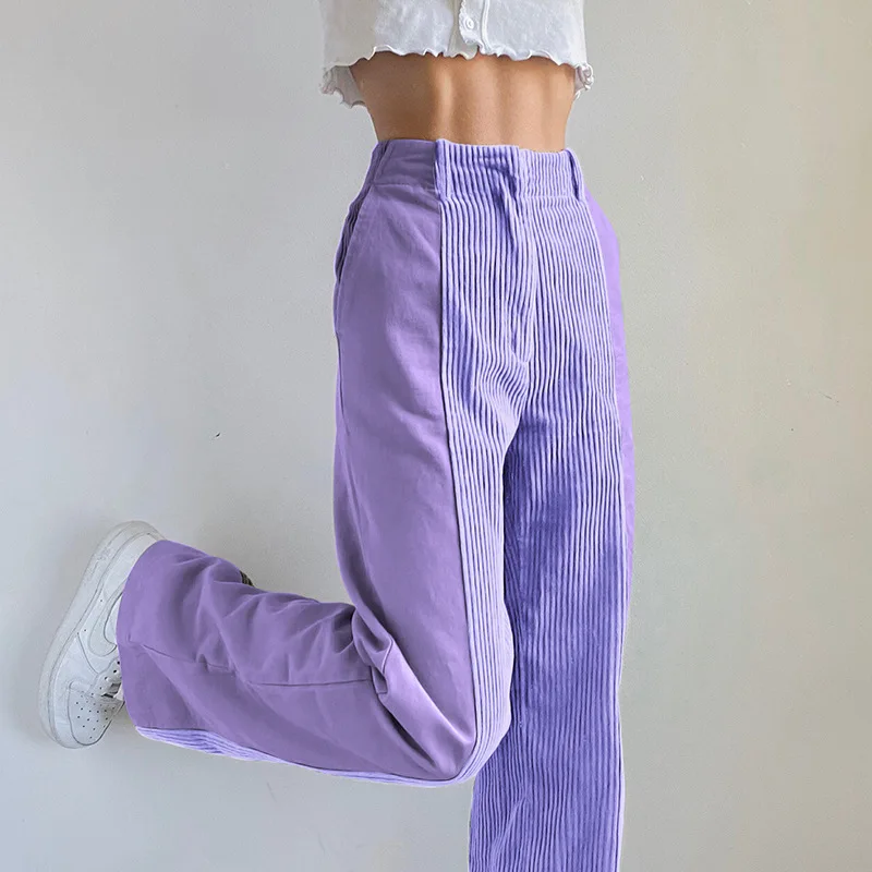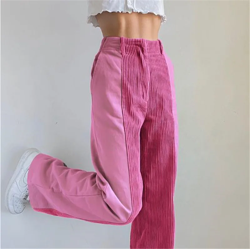 Женские прямые брюки, повседневные вельветовые брюки свободного покроя с высокой эластичной талией