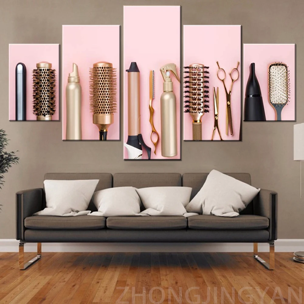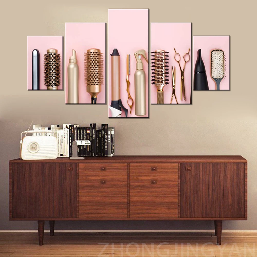 Аксессуары для парикмахерской картина золотые инструменты для парикмахера картины жикле искусство для салона красоты 5 шт. холст настенное искусство домашний декор
