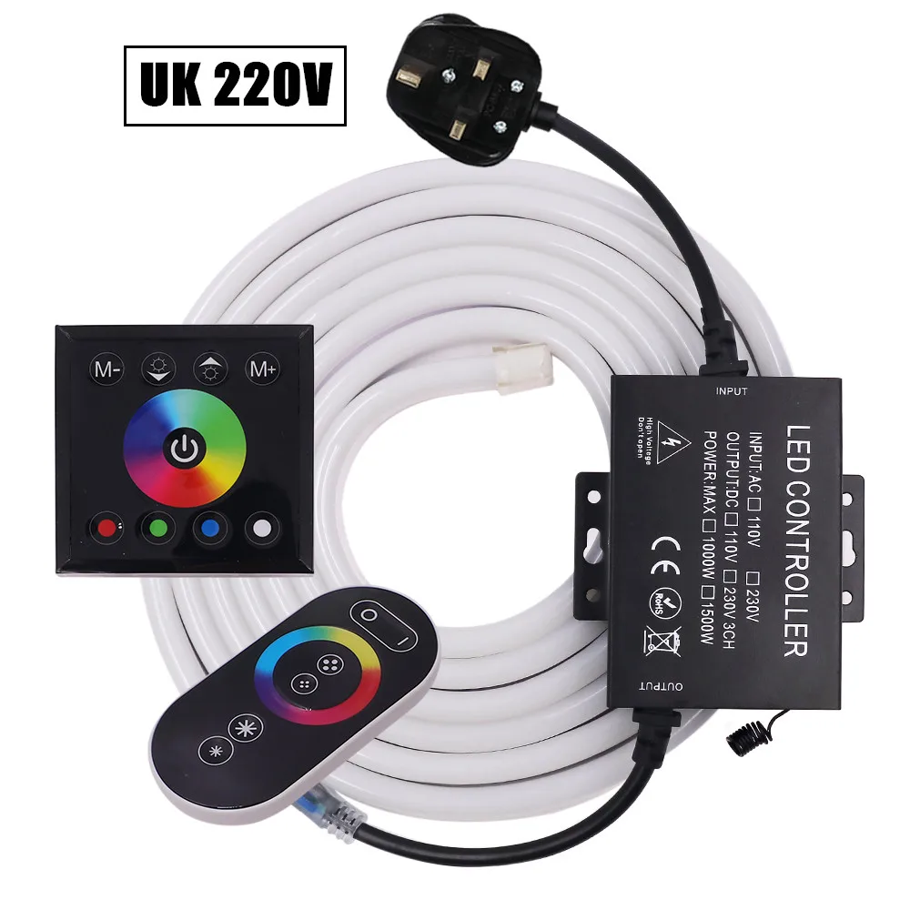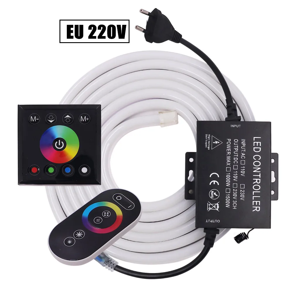 Цветная (RGB) неоновые полосы Водонепроницаемый ЕС AU UK 220V 110V настенный выключатель, сенсорный пульт дистанционного управления RGB гибкая лента светодиодный неоновая вывеска для организаций и магазинов светильник 5050 светодиодный полосы