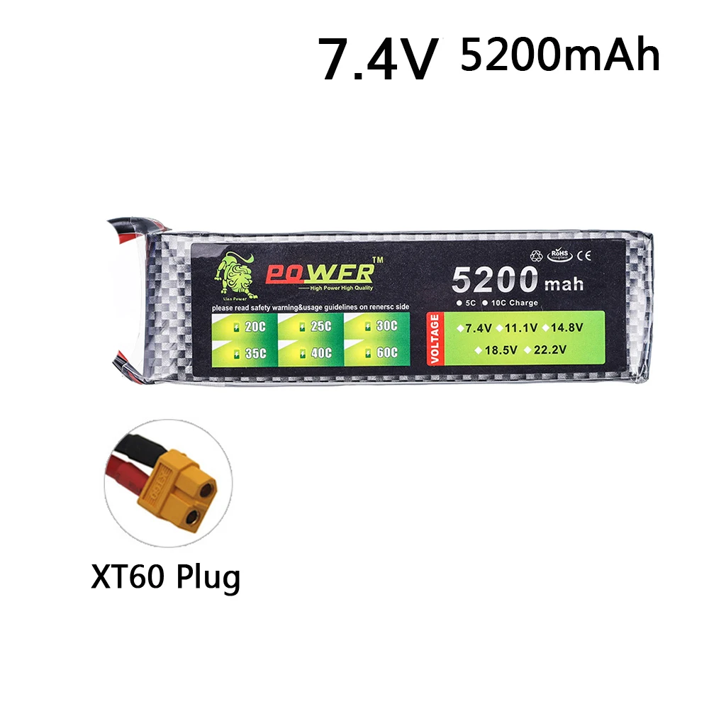 Аккумулятор LION POWER 2S для радиоуправляемых игрушек, грузовиков, лодок, 7,4 В, 1500 мАч, 2200 мАч, 2800 мАч, 4200 мАч, 5200 мАч