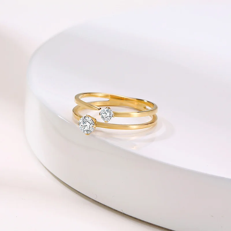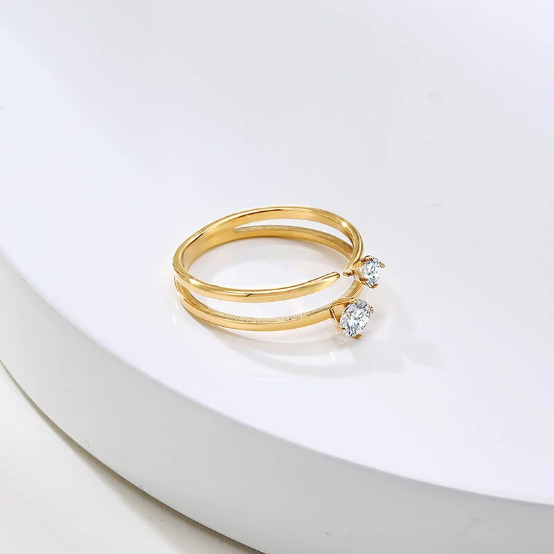 Стильное CZ Двухслойное кольцо с фианитом для женщин золотого цвета из нержавеющей стали женское кольцо для девушек ювелирные изделия
