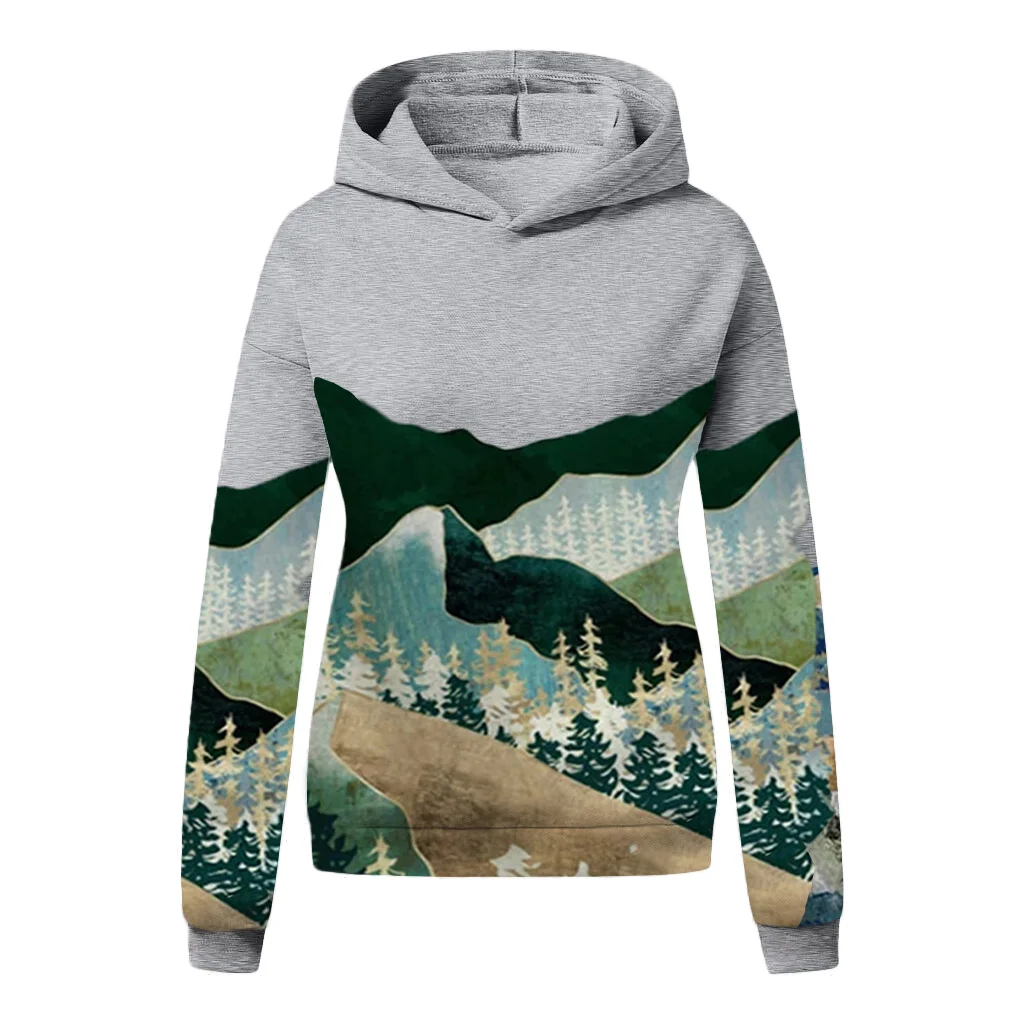 Номер моделиWomen Plus Size Mountain Printed Pullover Long Sleeve Sweatshirt Shirt
