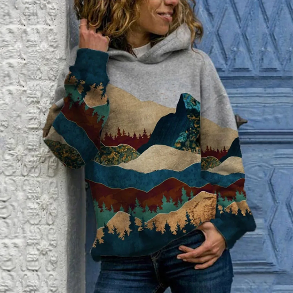Свитшот женский с длинным рукавом, винтажный пуловер с принтом гор,...