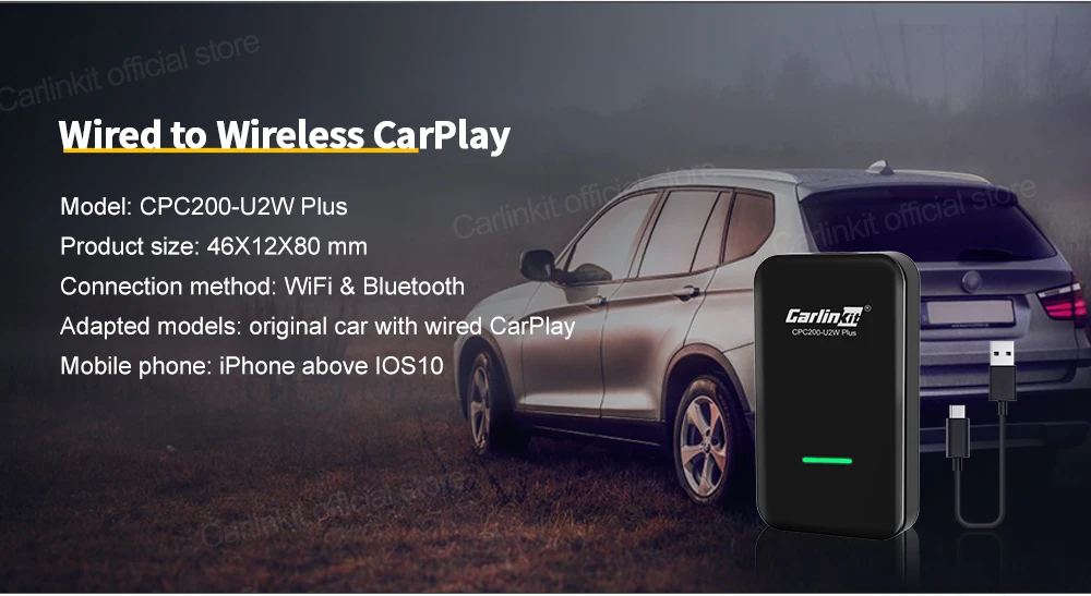 1. Этот продукт поддерживает Автомобили со встроенным проводным каркасом.2. Он может конвертировать проводную CarPlay в беспроводную CarPlay, проводное соединение поддерживает зарядку, а также поддерживает использование.3. Этот продукт может использоваться только для iPhone IOS10 или выше.
