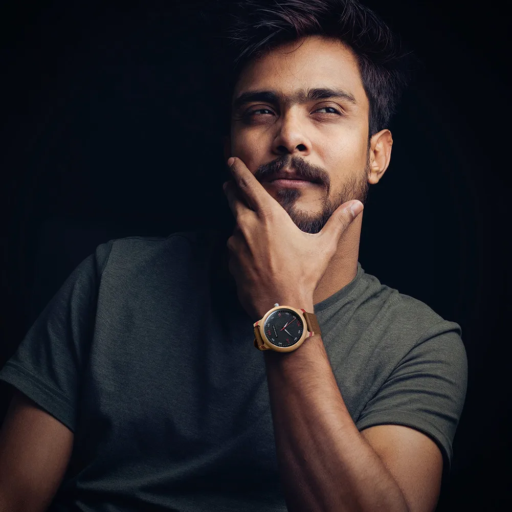 Это часы, которые отлично смотрятся на запястье, коробка легкая для бамбука. Ремешок выполнен из обработанной кожи, но вполне подходит по цене.