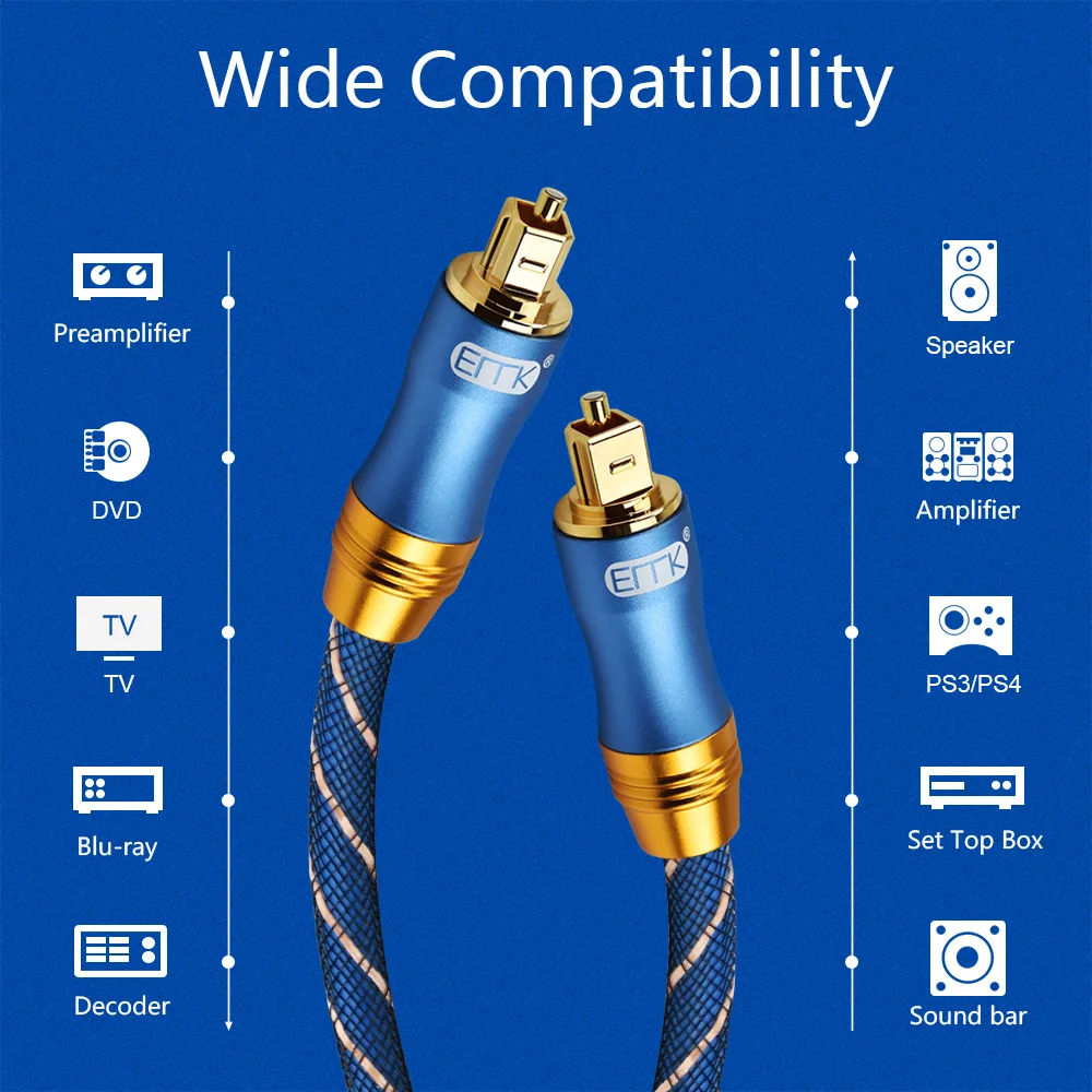 Цифровой звуковой оптический кабель SPDIF 5,1 Toslink, волоконно-оптический аудиокабель с оплеткой OD6.0, 1 м, 2 м, 3 м, 10 м, 15 м