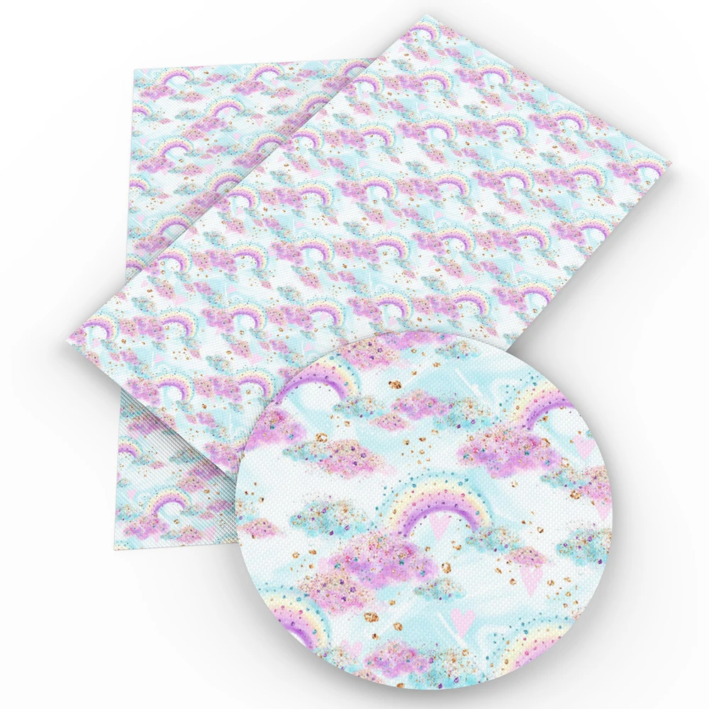 Радужные цветные листы из искусственной кожи с милым рисунком единорога, рулон ткани из искусственной кожи для изготовления сережек, бантов