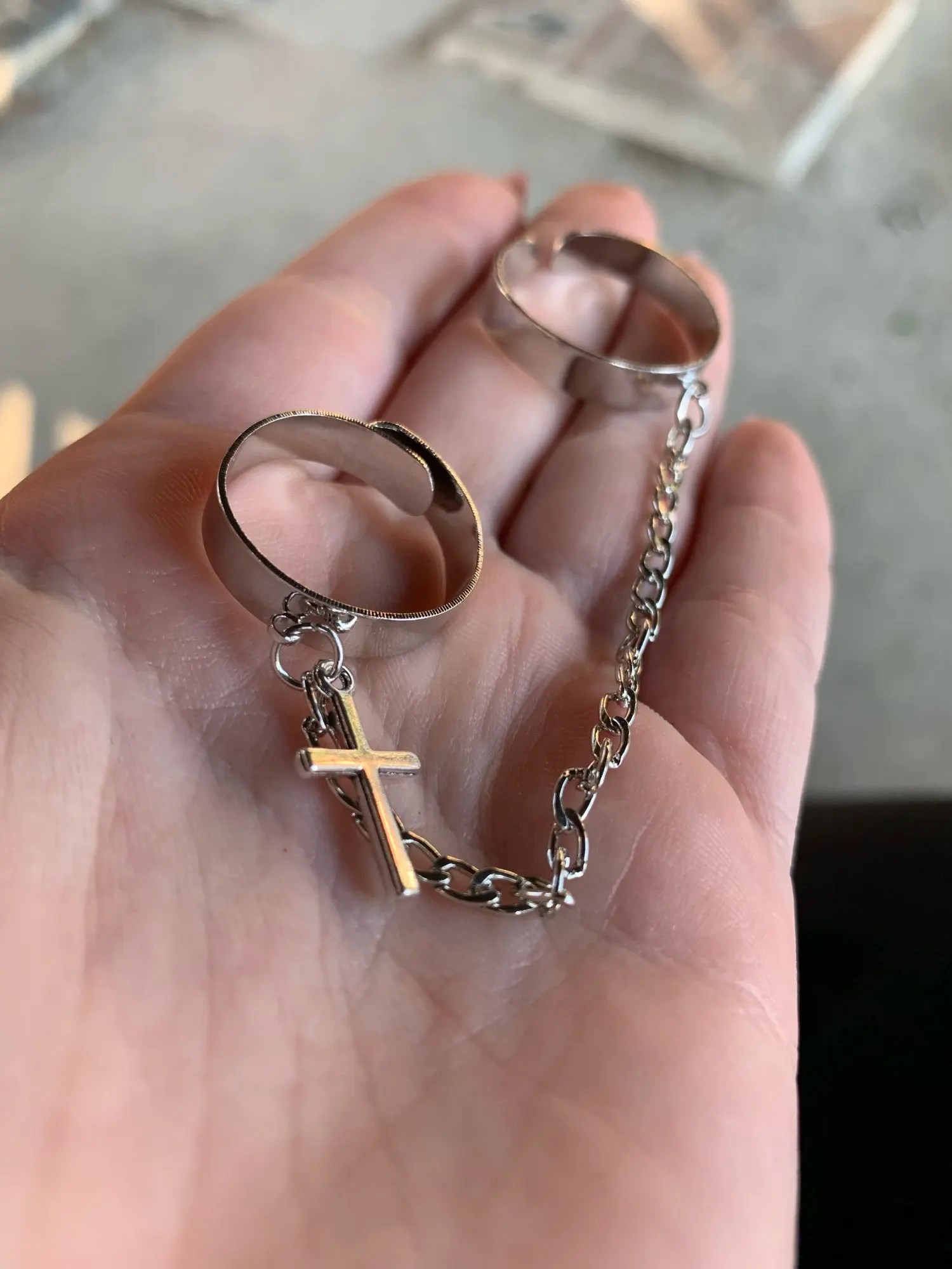 Модное Стильное Простое сочетание колец с цепочкой и крестом в стил...
