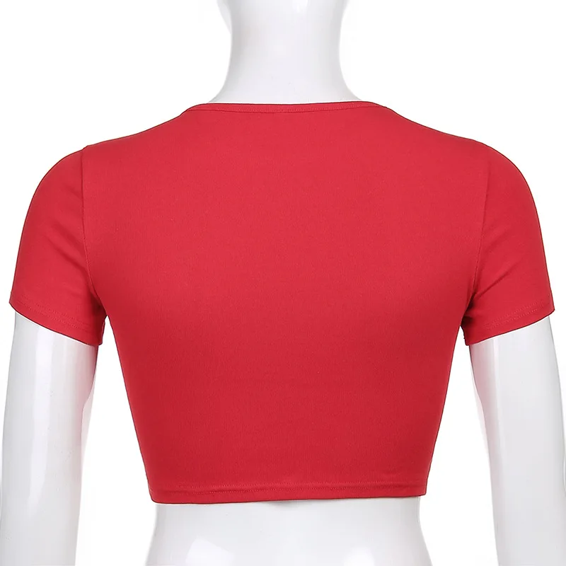 Женская хлопковая Футболка Y2K, черная, красная, укороченная футболка с кристаллами, летняя, уличная одежда в стиле 90-х