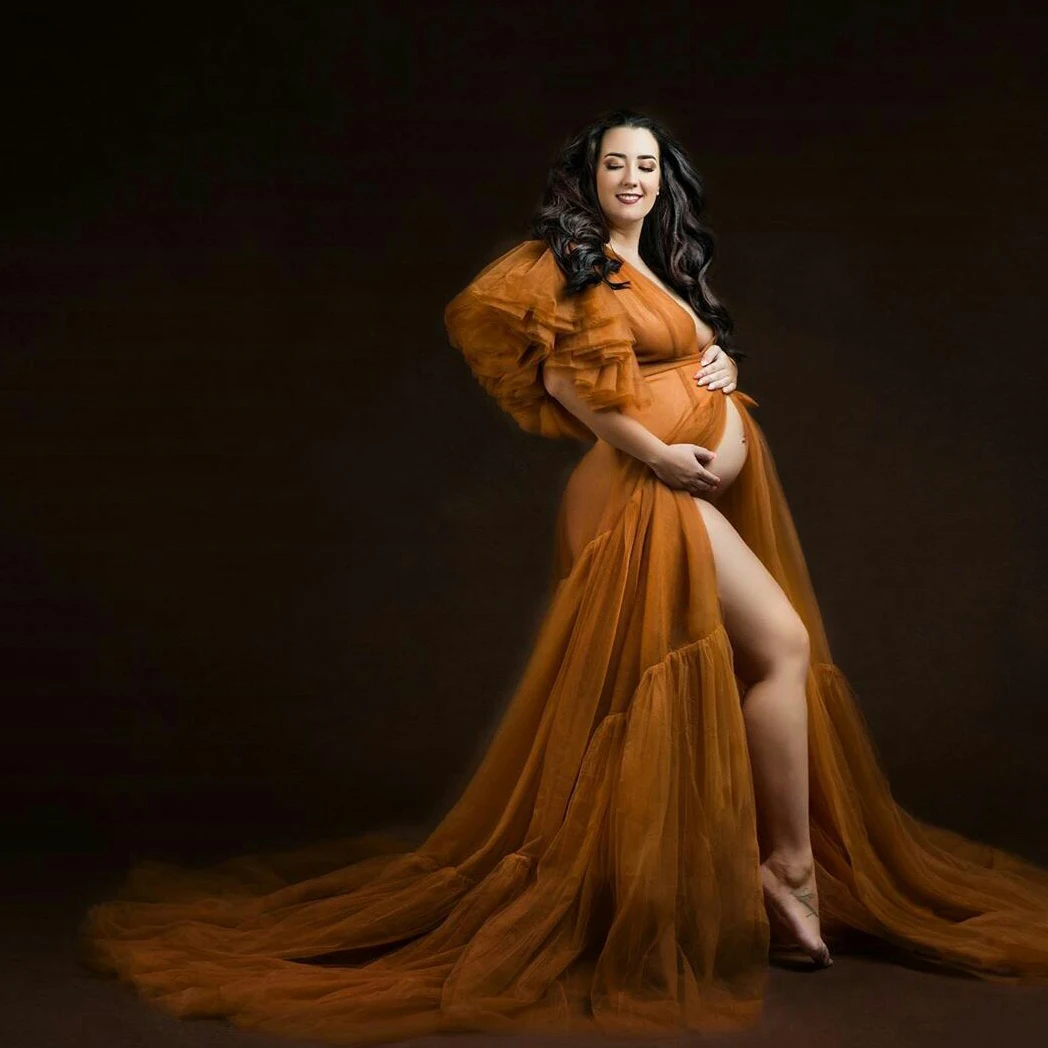 Тюлевое платье с оборками и коротким рукавом для беременных сексуальное кимоно для беременных женщин халаты вечерние платья для фотосессии Пижама прозрачный халат