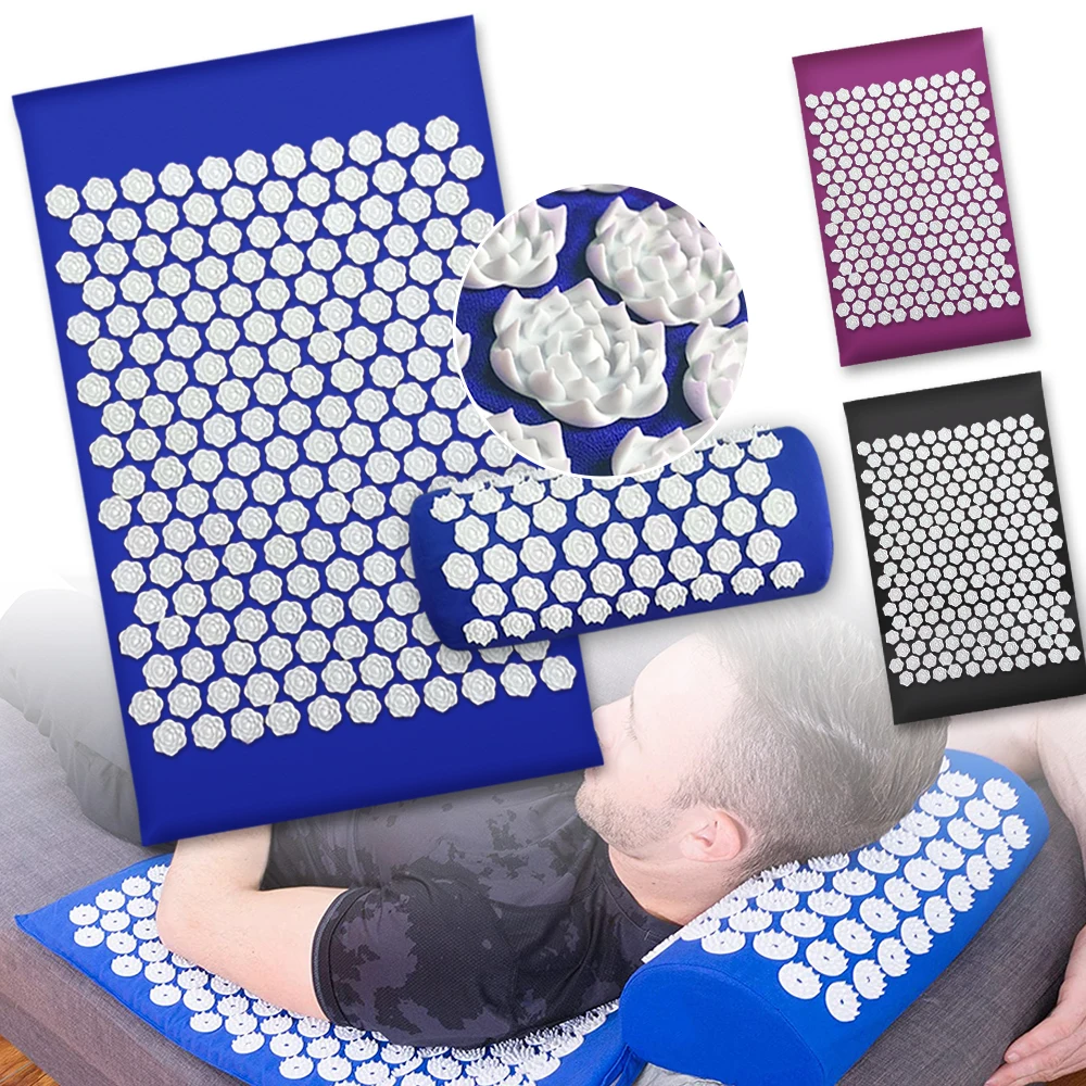 Акупрессурный Коврик для йоги с цветком лотоса, массажный коврик для снятия боли в шее и стопах, с шипами, аппликатор Кузнецова