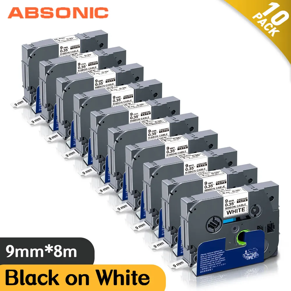 Кабельная этикетка Absonic 4/10PK, 9 мм, FX221 для Brother FX221, этикетки, лента, лента, совместимая с Brother Label Maker PT-H110
