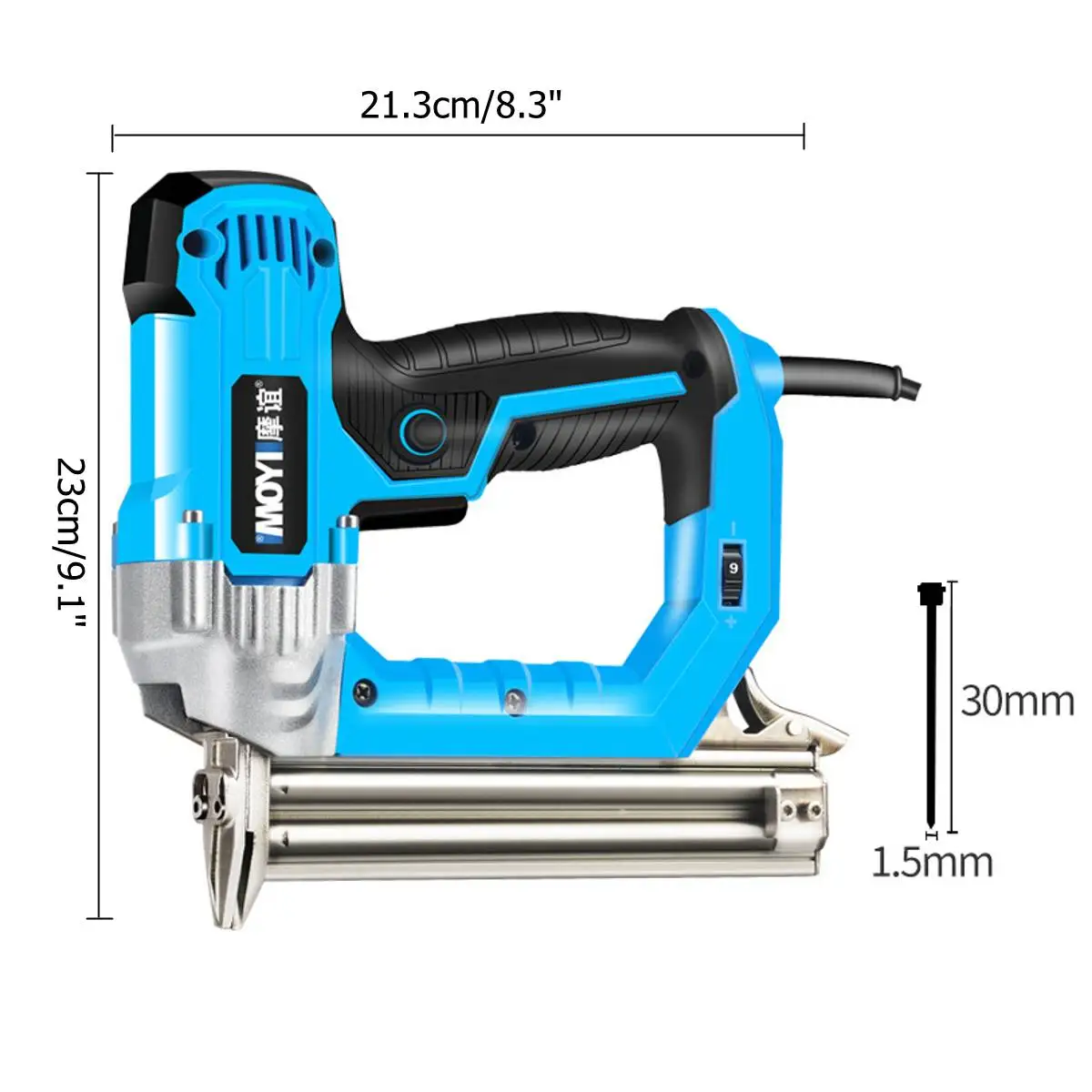 Модель: F30 Материал: акрилонитрил бутадиен стирол (ABS) Цвет: синий Мощность: 2300 Вт Напряжение: 220 В ~ 240 В Номинальная частота: 50 Гц Скорость: 45 шт/мин Длина гвоздя: 30 мм Ширина гвоздя: 1,5 мм Диапазон гвоздей: 10-30 мм Емкость пазов для ногтей: 100 шт Размер: 21.3x2 3 см/8,3*9,1"