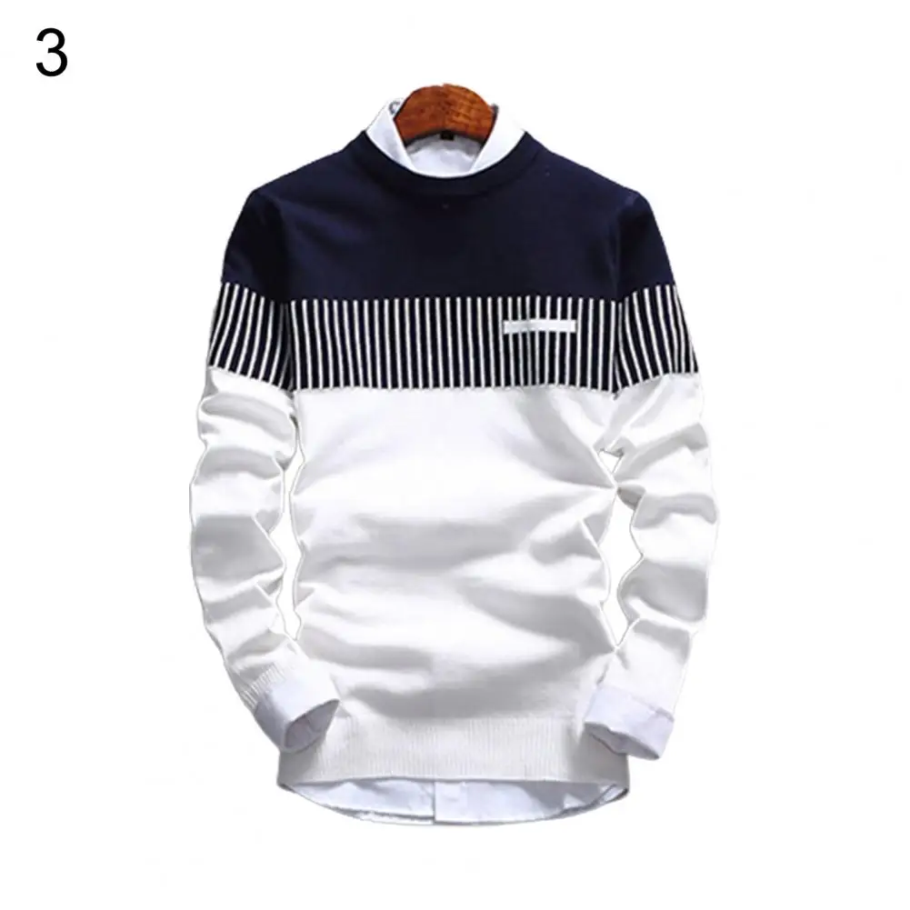 Мужской трикотажный свитер в полоску, с круглым вырезом