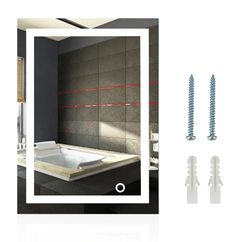 Размер зеркала 500*700 мм. Так как переключатель установлен на углу, его можно повесить горизонтально или вертикально, что составляет 700*500 мм. Объем упаковки, 560*80*760 мм, вес брутто, 8,5 кг.