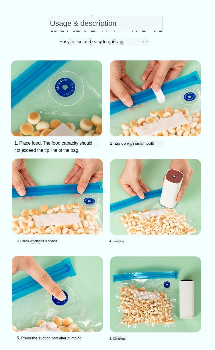 Автоматический вакуумный насос, компактный пищевой пакет, мини-кухонный вакуумный упаковщик, сухие фрукты для хранения, термоусадочный пластиковый пакет