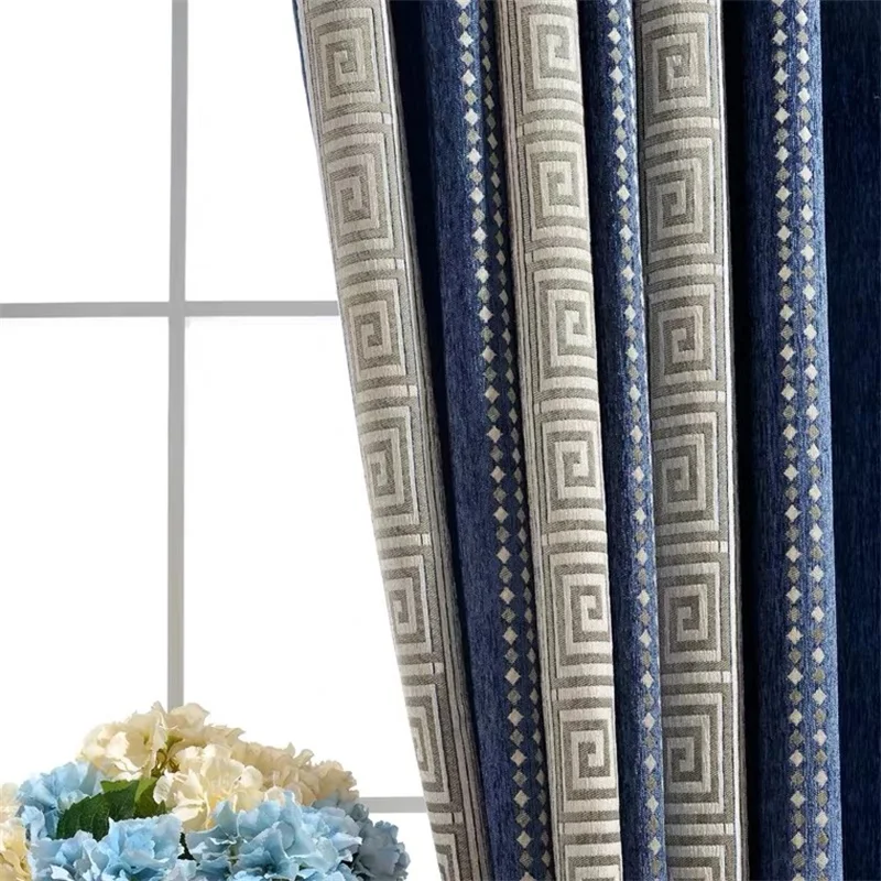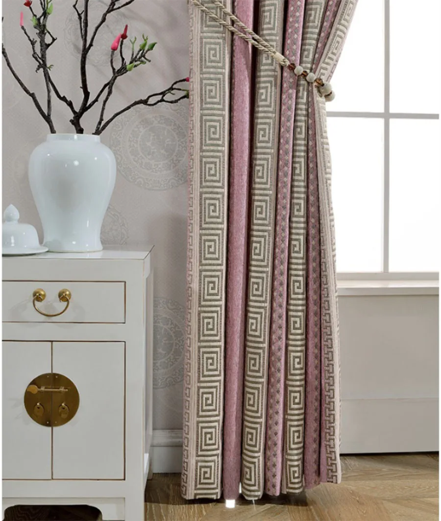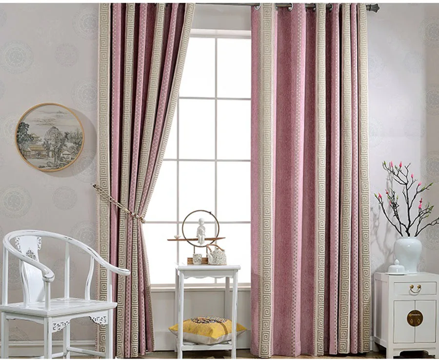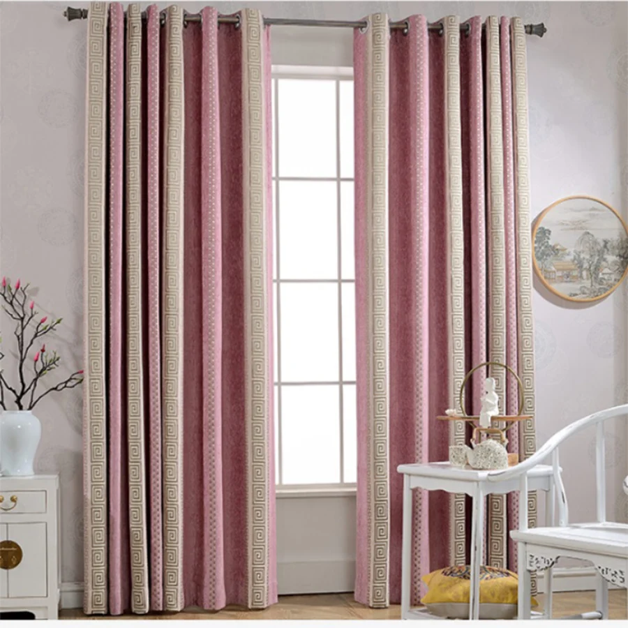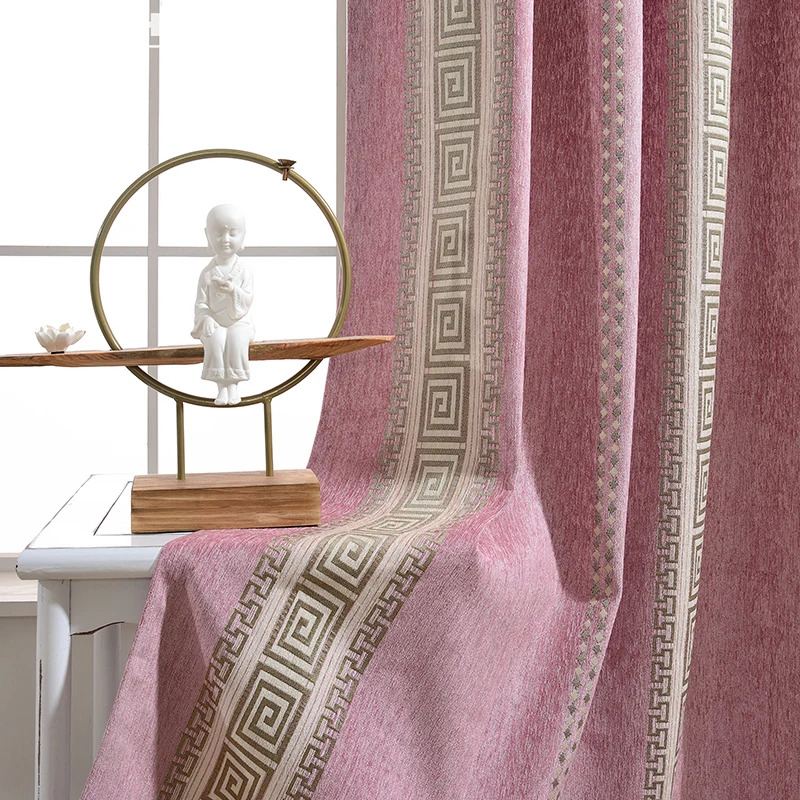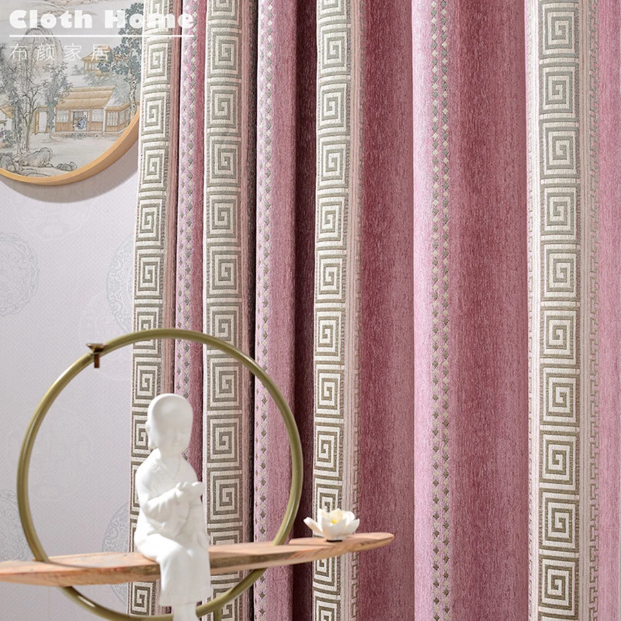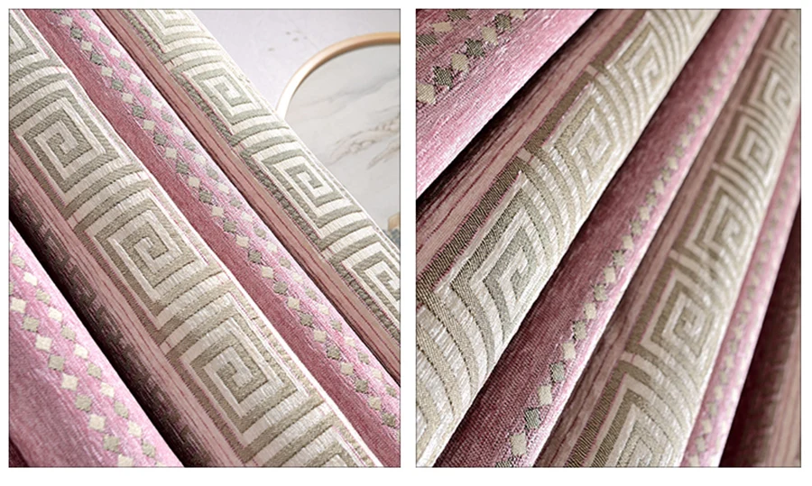 Шторы из шенилла розовые плотные, в полоску, с геометрическим узором, затемняющие шторы, китайские жаккардовые ткани для гостиной, спальни MY542 #4
