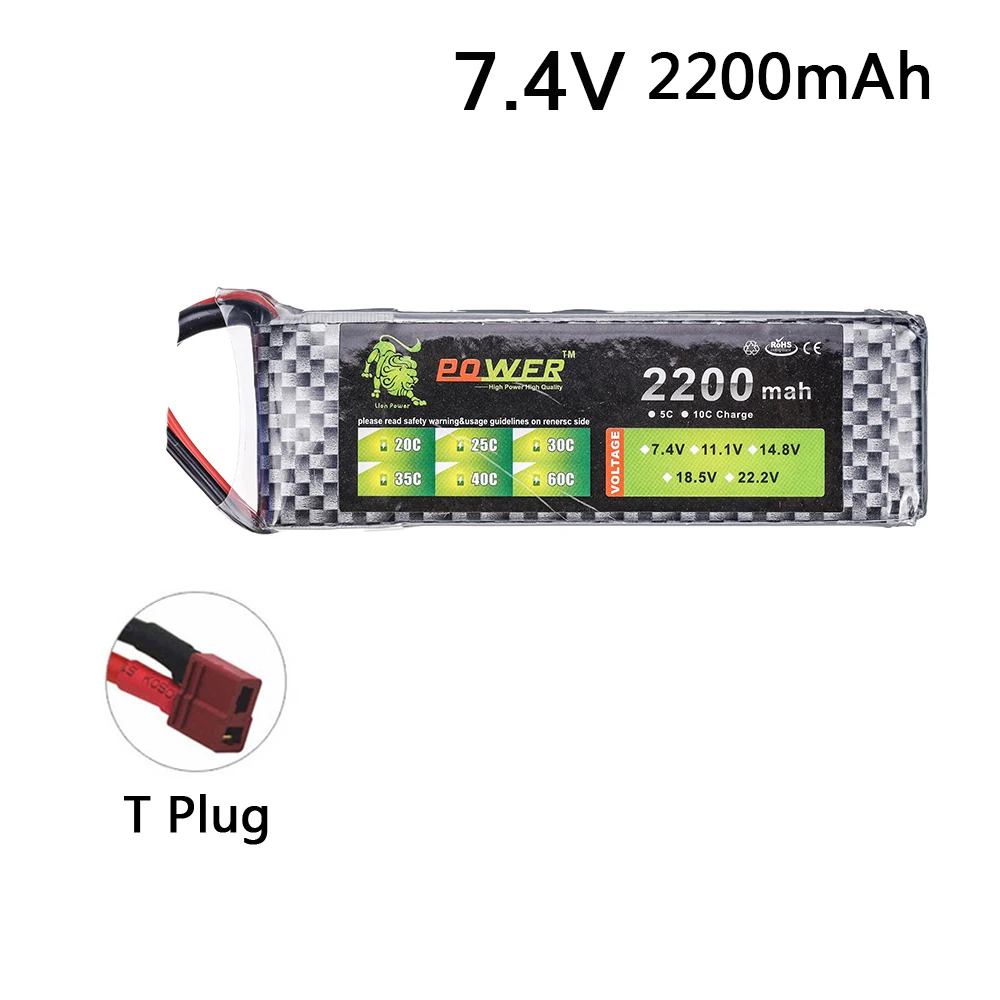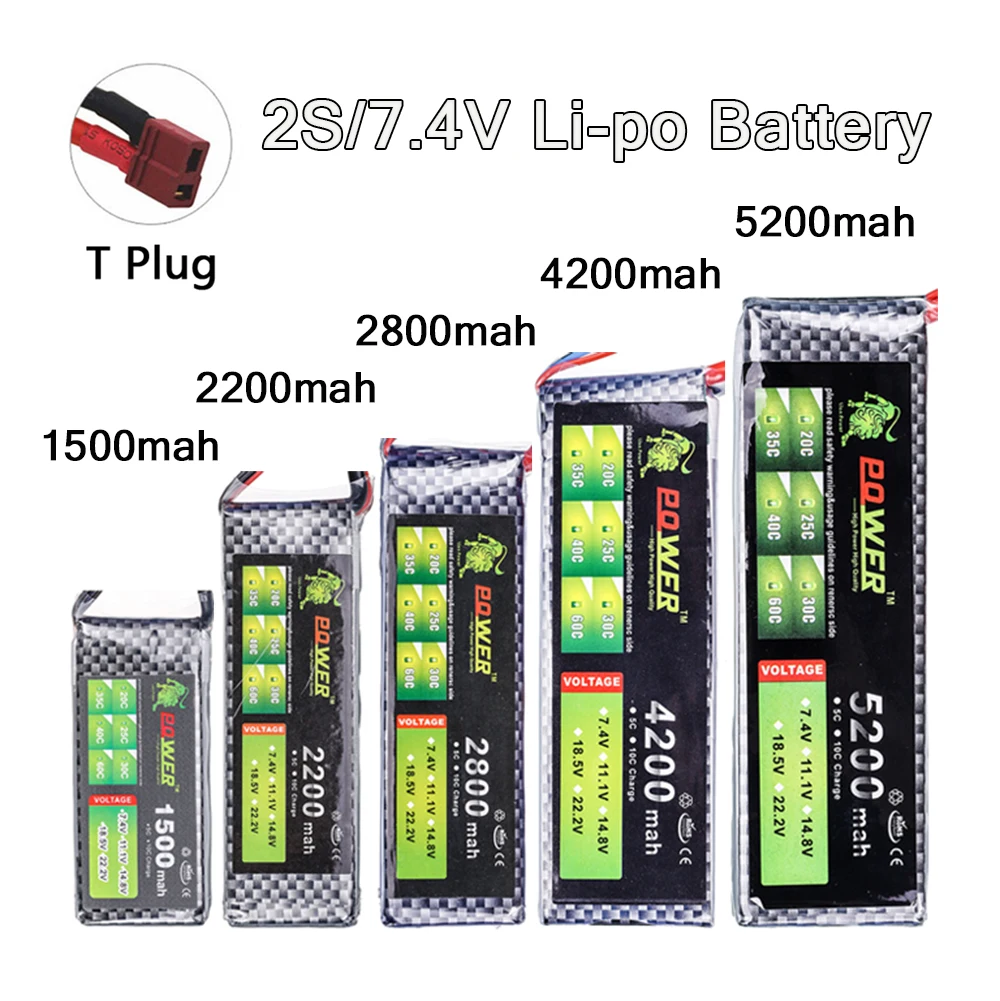 Аккумулятор Lipo 2S, 7,4 В, 1500 мА ч, 2200 мА ч, 2800 ма ч, 4200 ма ч, 5200 мА ч, с Т-образным разъемом для радиоуправляемых игрушек, автомобилей, грузовиков, лодок, дронов, вертолетов, квадрокоптеров