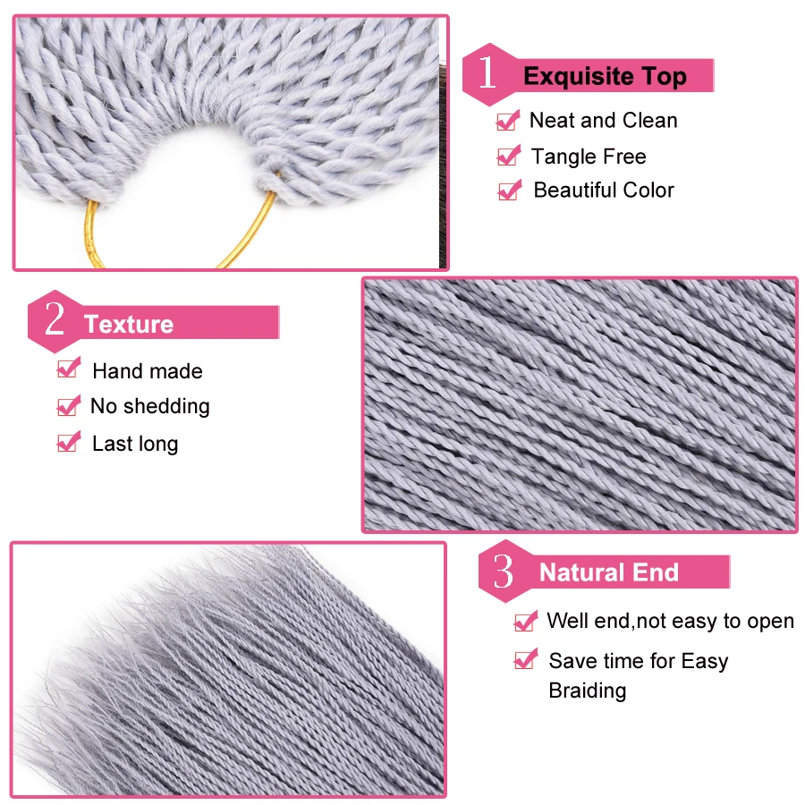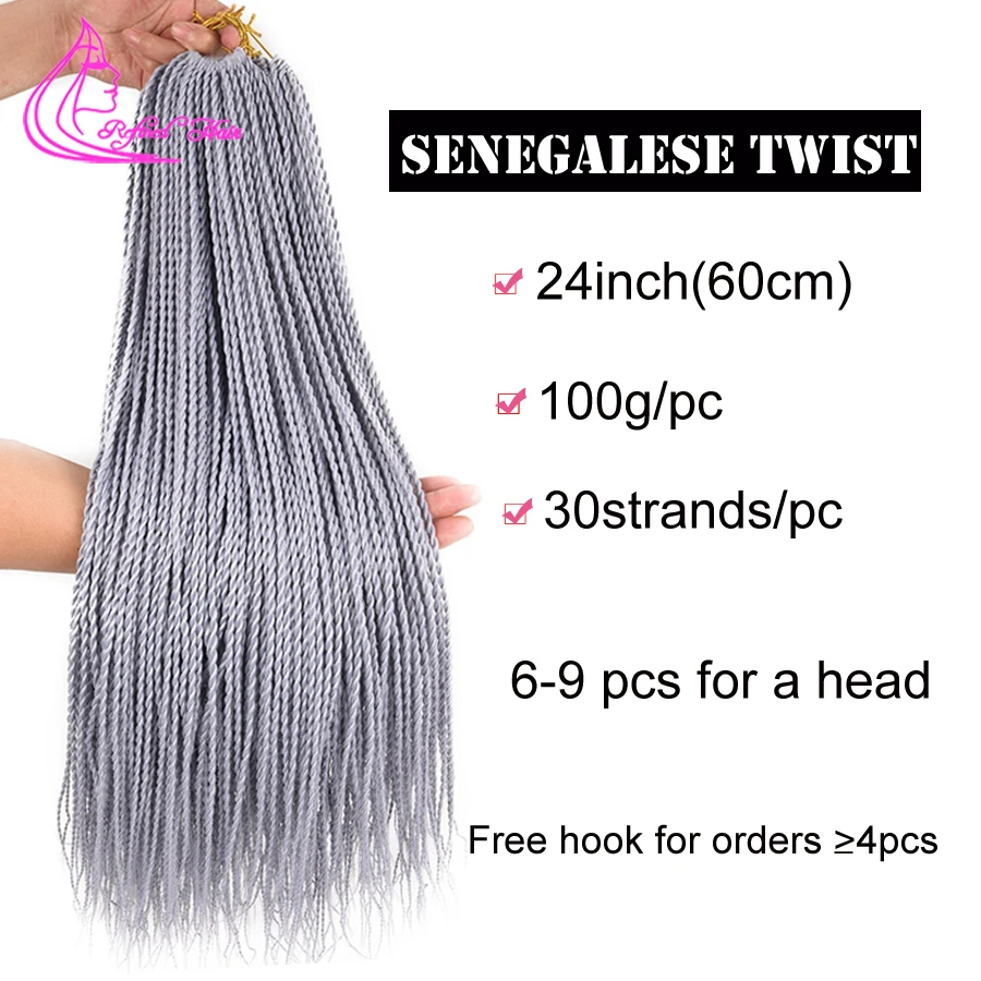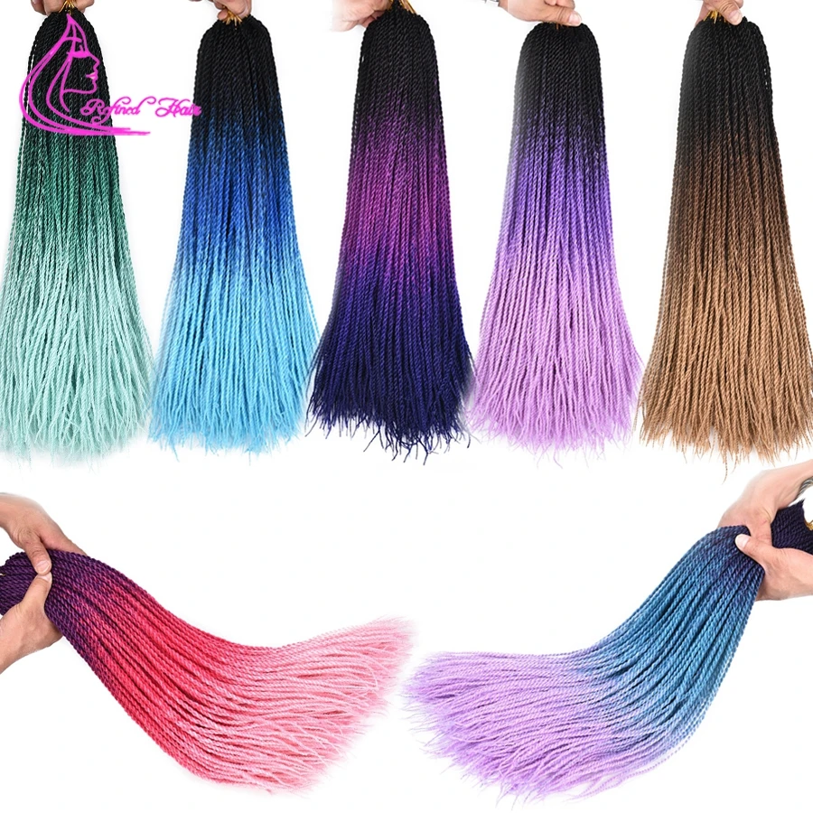 24 дюйма 100 г Омбре Сенегальские крученые волосы, высокотемпературные плетеные волосы, предварительно растягивающиеся синтетические волосы для наращивания крючком, 30 прядей