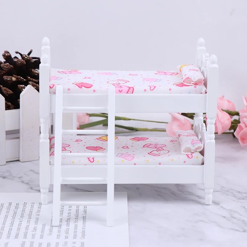 Кукольный домик 1:12, миниатюрная деревянная кровать с подушкой или двухъярусная кровать, мебель для спальни, аксессуары для кукольного дома