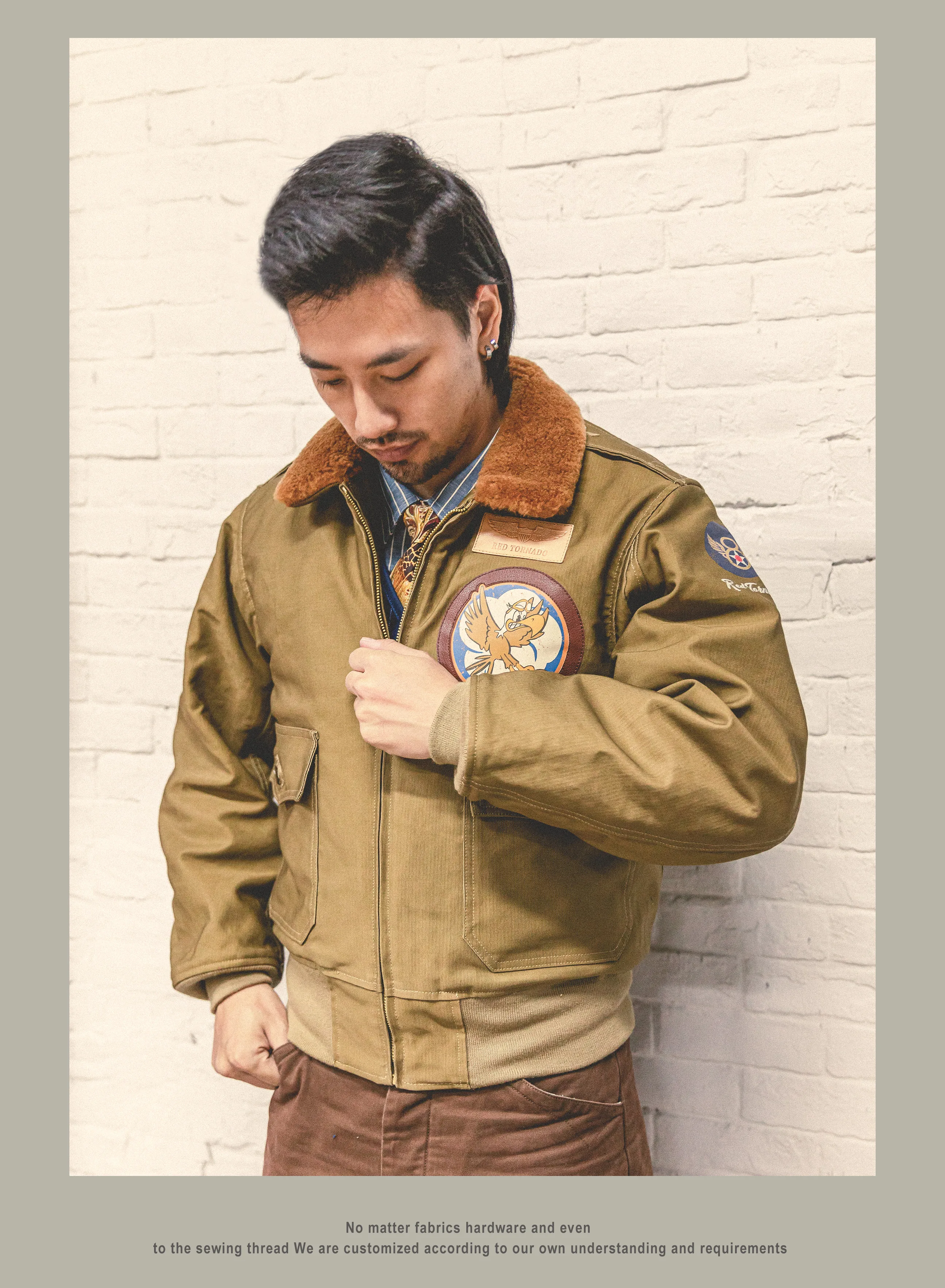 RTB10 Red Tornado США большой размер винтажный свободный фитинг супер качество хлопок ткань 100% шерсть Подкладка и воротник B10 куртка