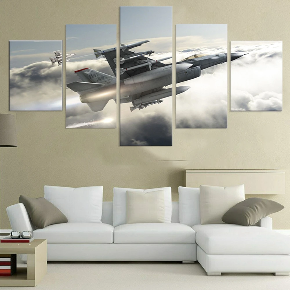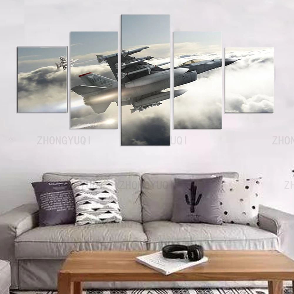 Картина на холсте с изображением боевого Сокола, 5 панелей, F-16