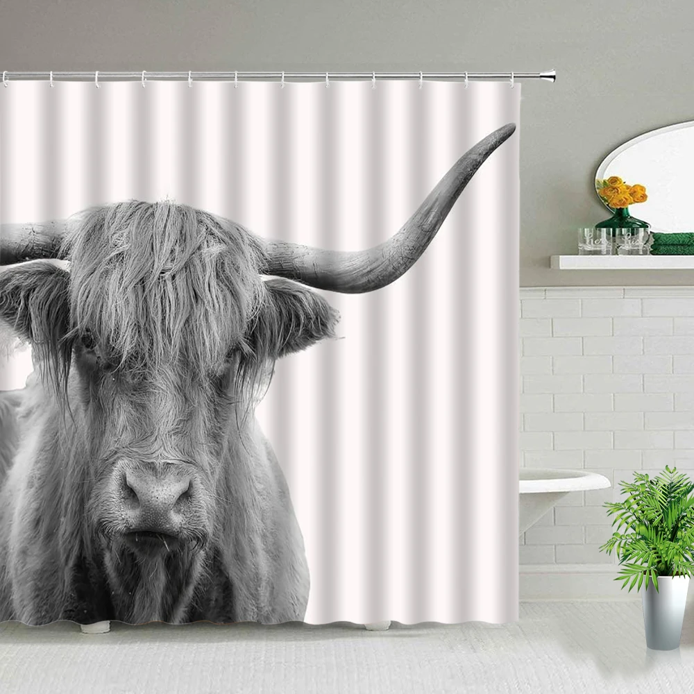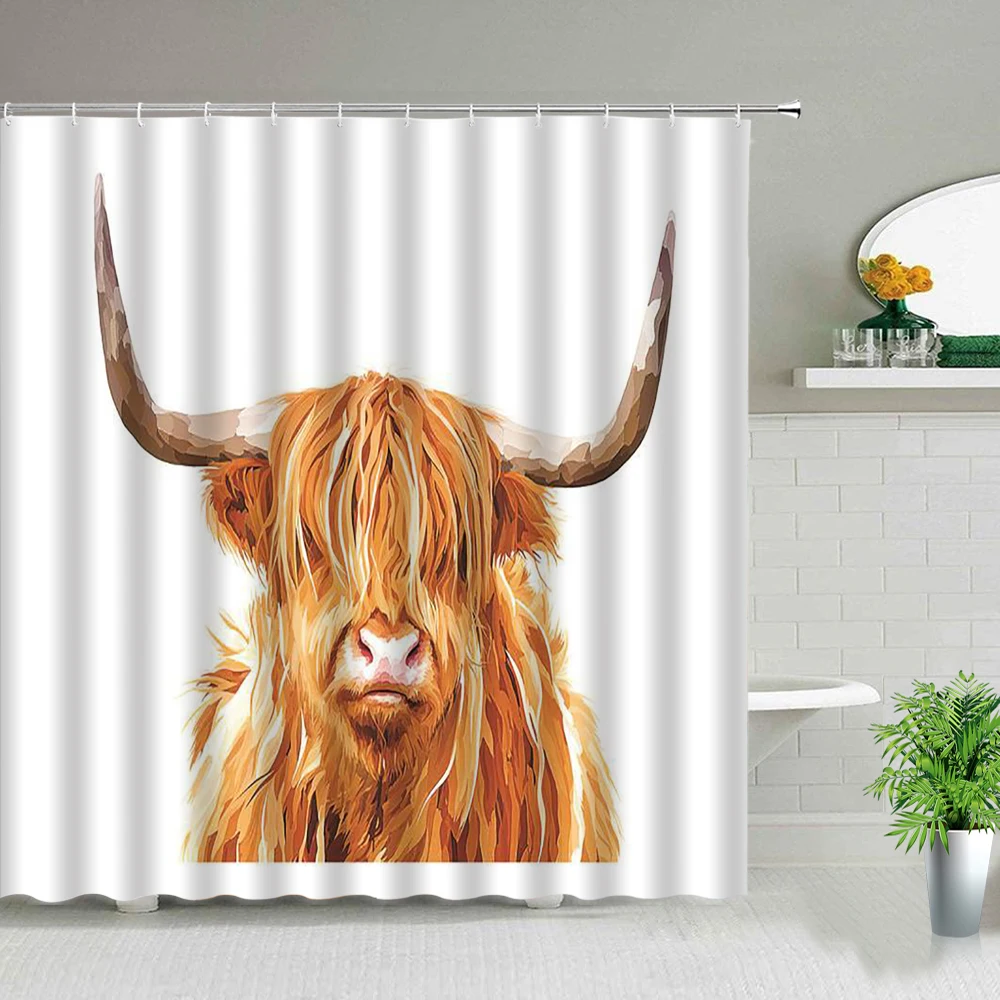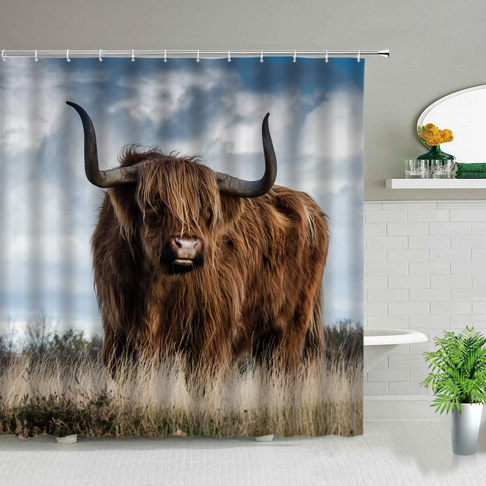 Водонепроницаемая занавеска для душа Highland в форме коровы с 3D принтом, занавеска для ванной комнаты с животными из дикой природы, художественный декор для ванны с крючками