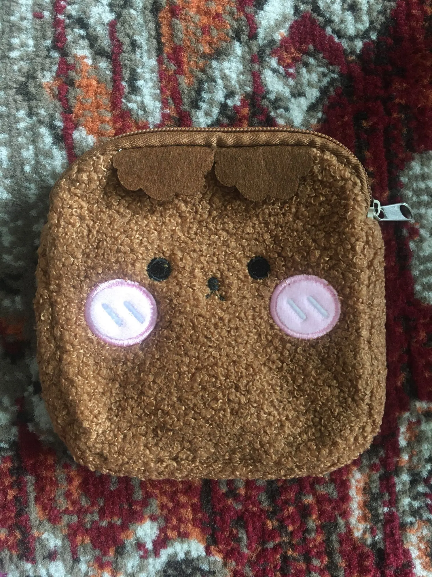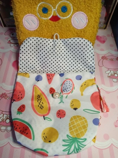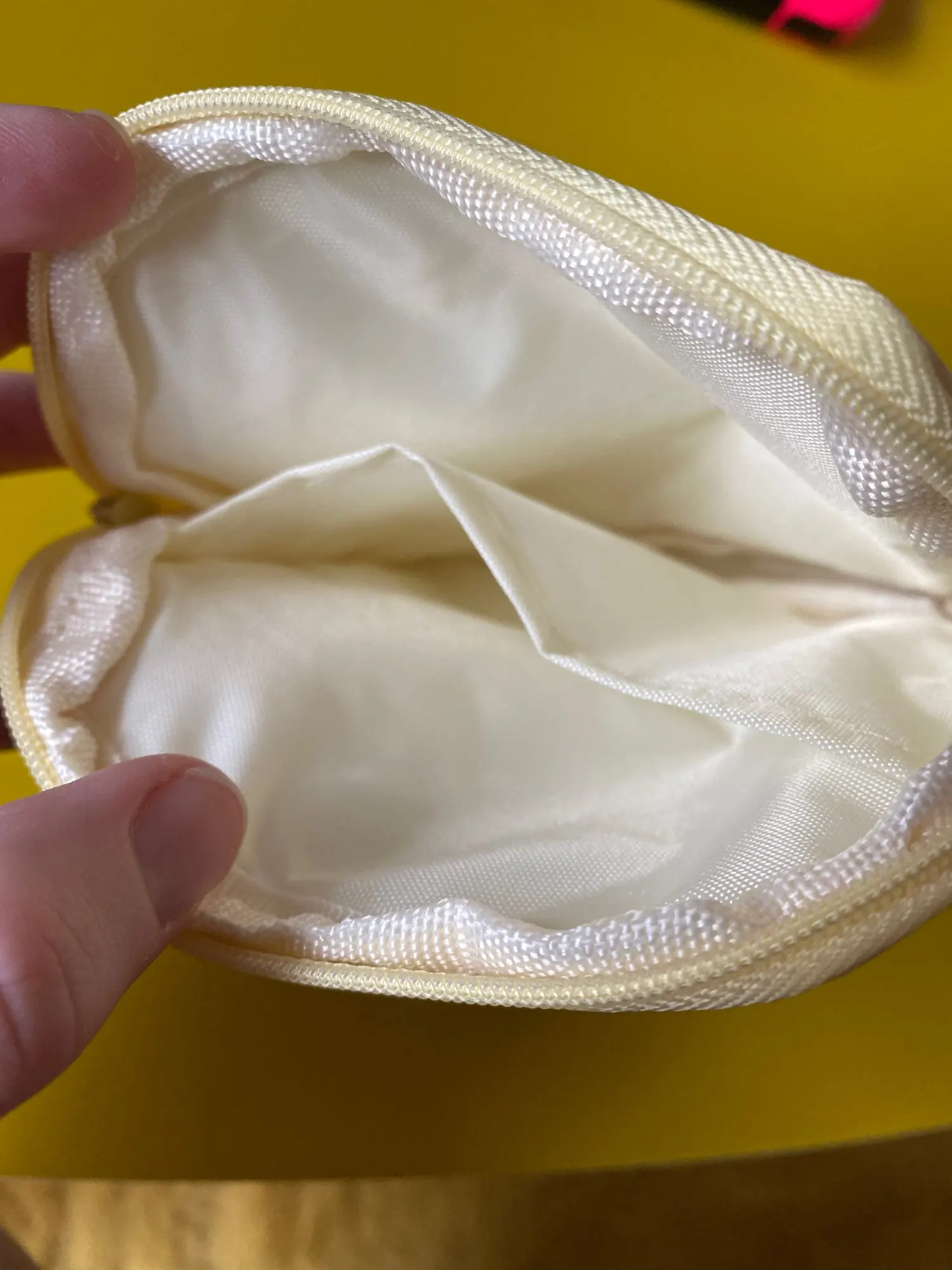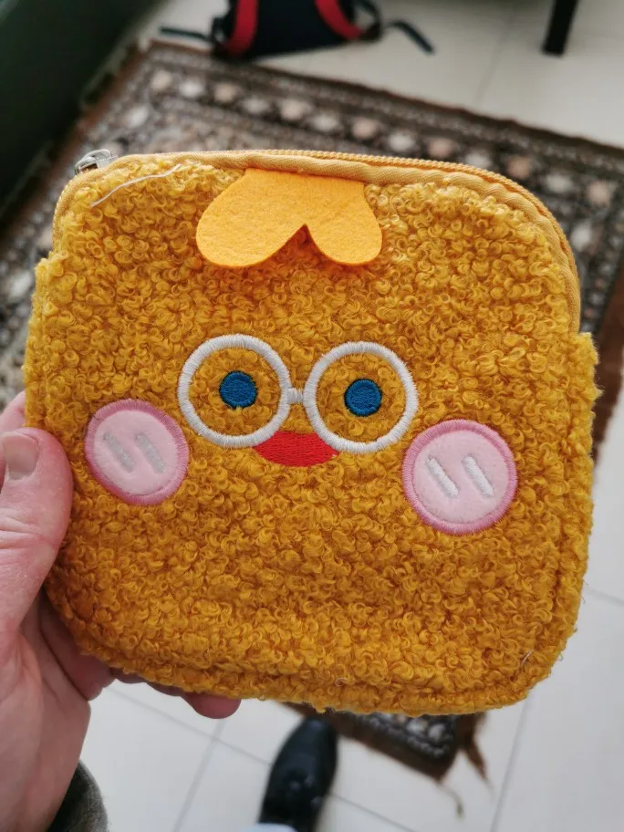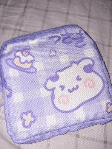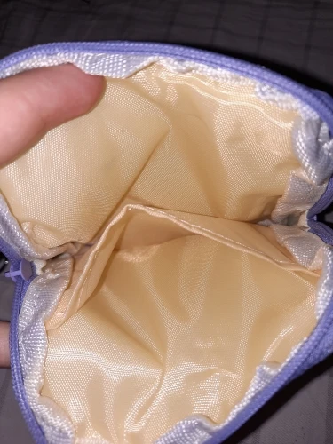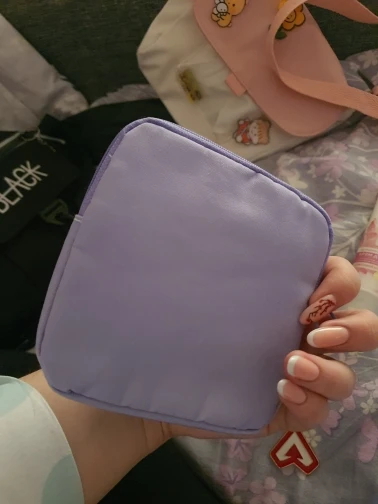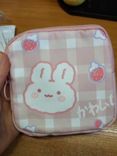 Очень миленький, достаточно большой, так что можно не переживать, что какие-то прокладки не влезут, или платочки. Все идеально вмещает Замочек слабенький, но если не дёргать резко то норм. Внутри есть ещё кармашек. Идеально подходит для своих целей