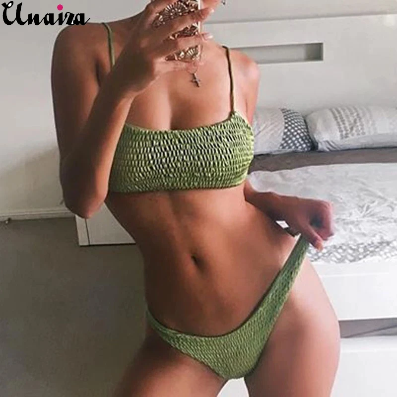 Женское трикотажное бикини Unaiza, бюстгальтер пуш-ап на бретелях с низкой талией, бандажный комплект бикини, купальник, треугольный купальник, купальный костюм, лето 2021