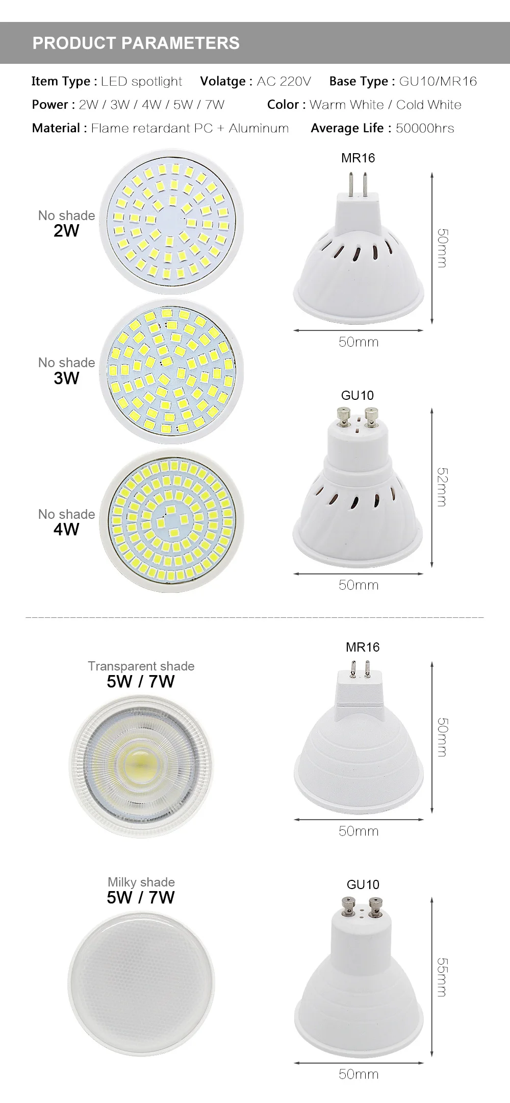 10 шт. 2 Вт 3 Вт 4 Вт 5 Вт 7 Вт GU10 MR16 Bombillas Светодиодная ла...