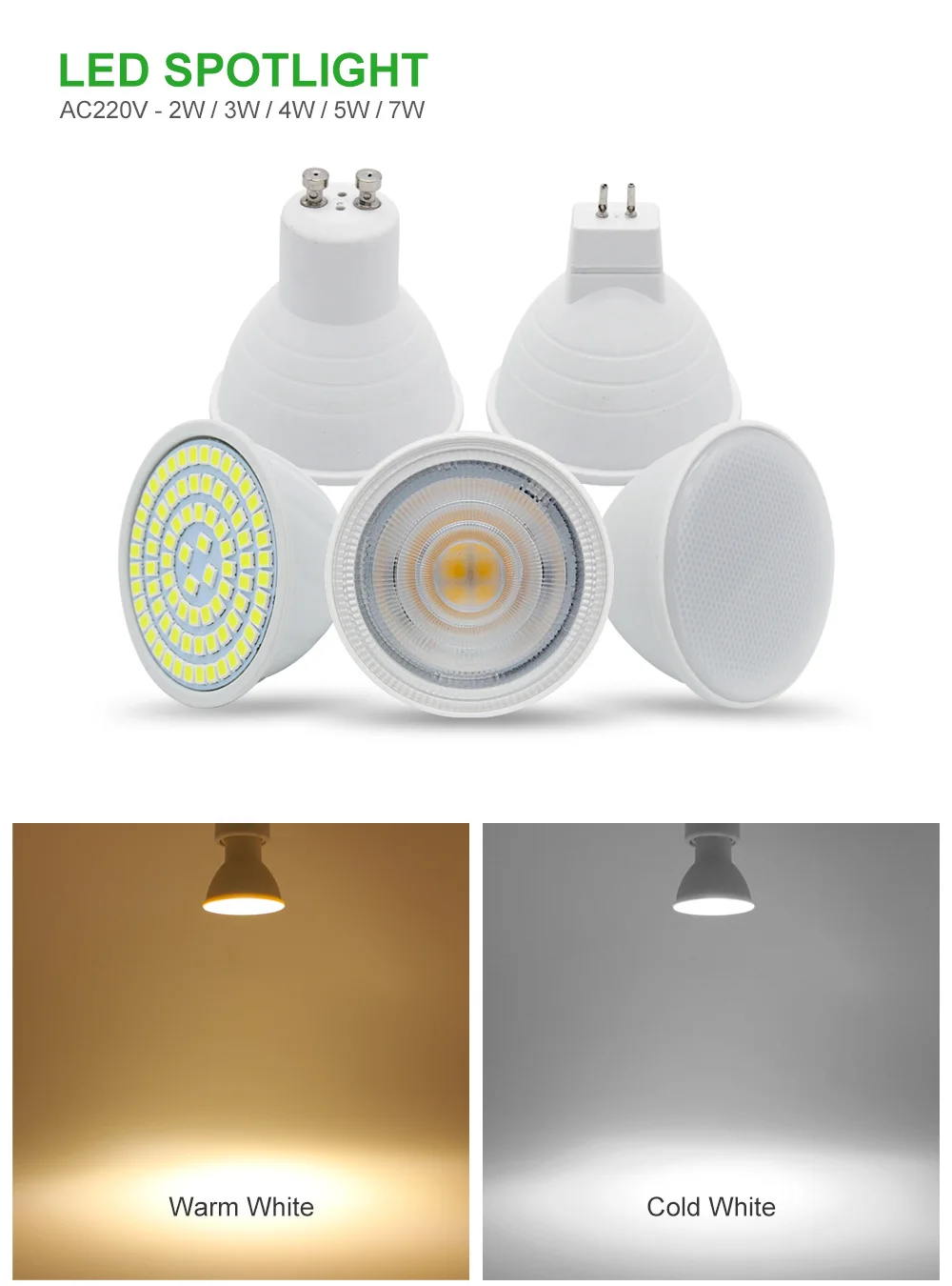Светодиодная лампа GU10 MR16, 2 Вт, 3 Вт, 4 Вт, 5 Вт, 7 Вт, точечный светильник COB 2835 SMD, 60 светодиодов