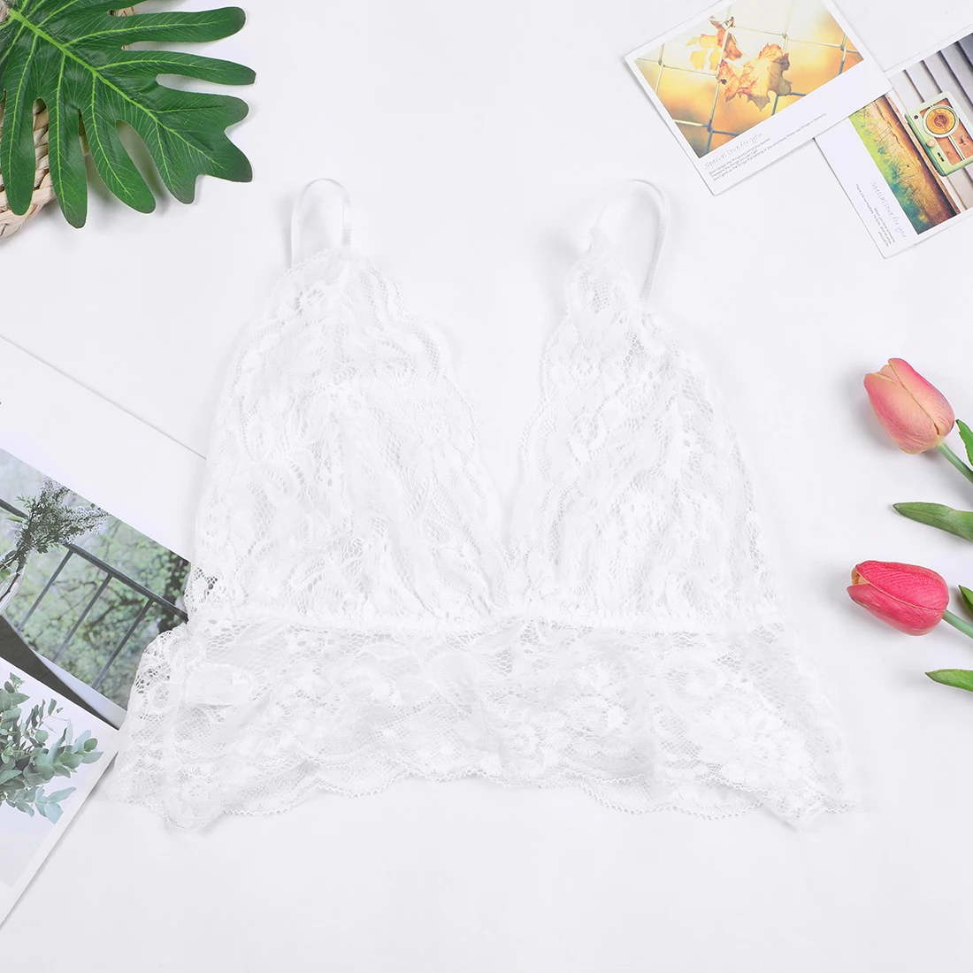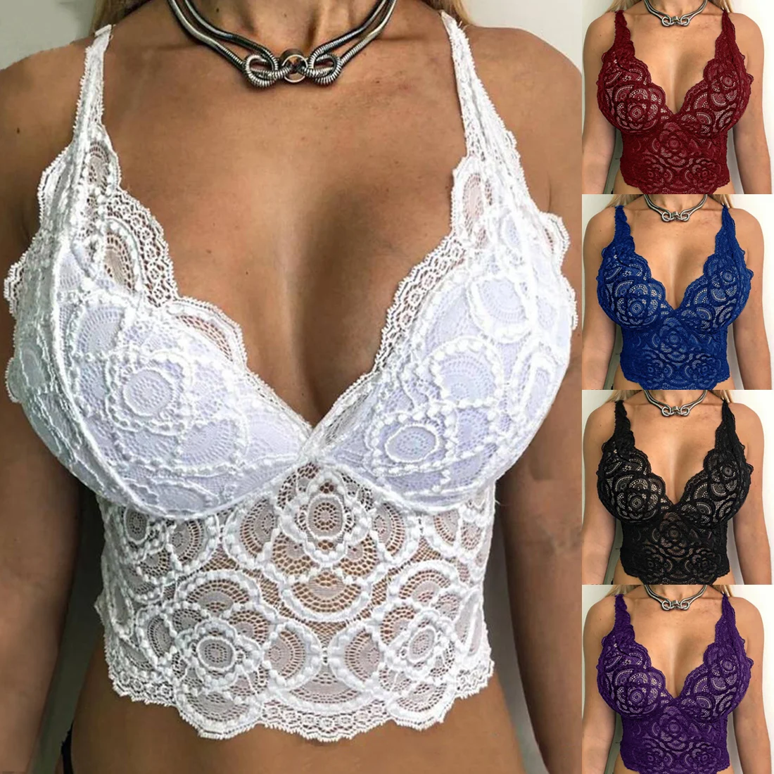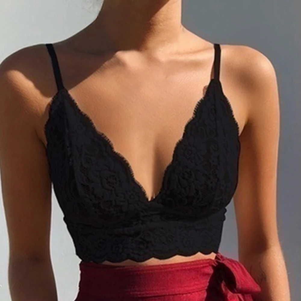 Особенности: Посылка: женский бюстгальтер-топ Размер: S-2XLМатериал: полиэстерТип: КружевоПривлекательный бандажный кружевной женский бюстгальтер, топ на тонких бретелях, белый, черный сексуальный бюстгальтер, майка, топы, Женская майка без рукавов .