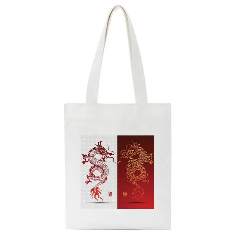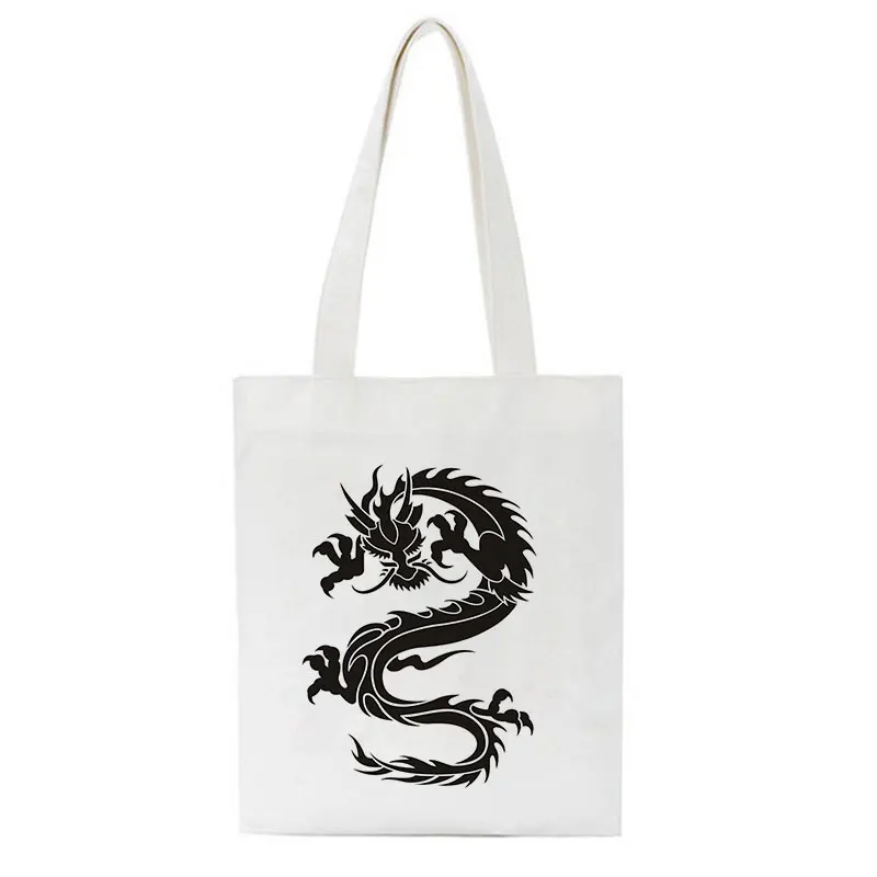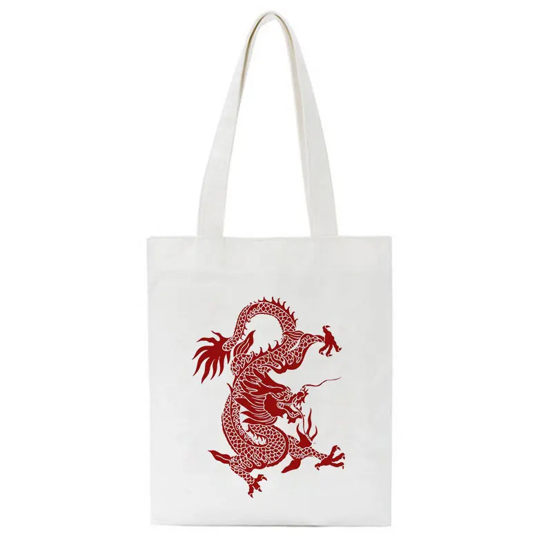 Сумка-тоут женская холщовая, с принтом в китайском стиле и надписью...
