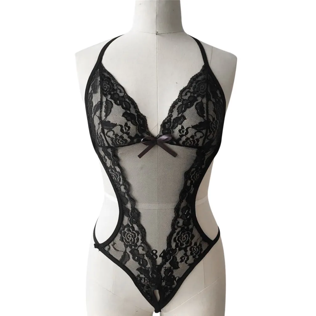 Женский кружевной Пижамный комбинезон нижнее белье с вырезами и открытой спиной